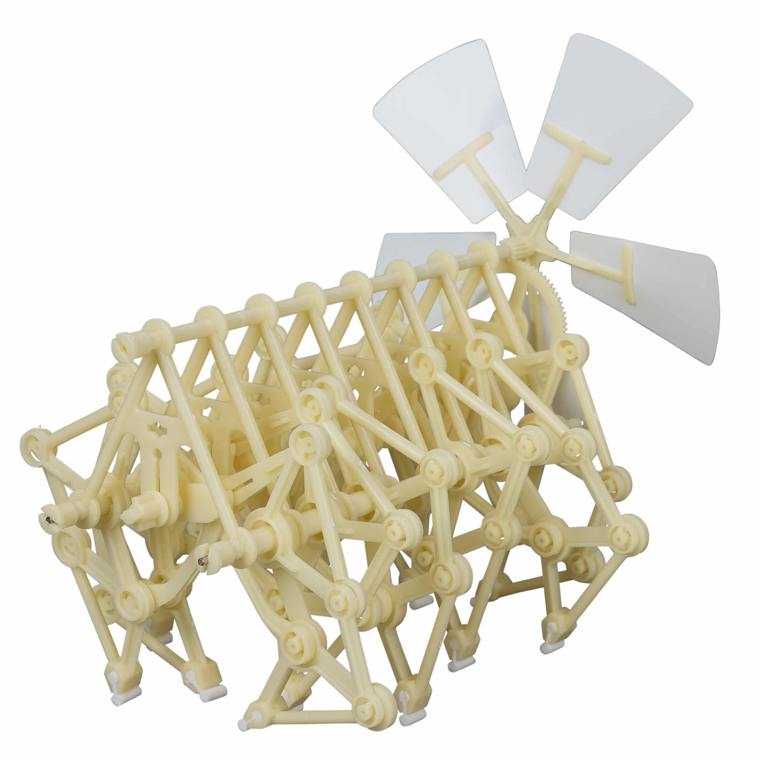 This Walking Wind Machine walks around leisurely, propelled naturally by the wind flowing through its turbines. Now you can build and enjoy your very own miniature version - a small Strandbeest that glides gracefully across surfaces without electricity or batteries.