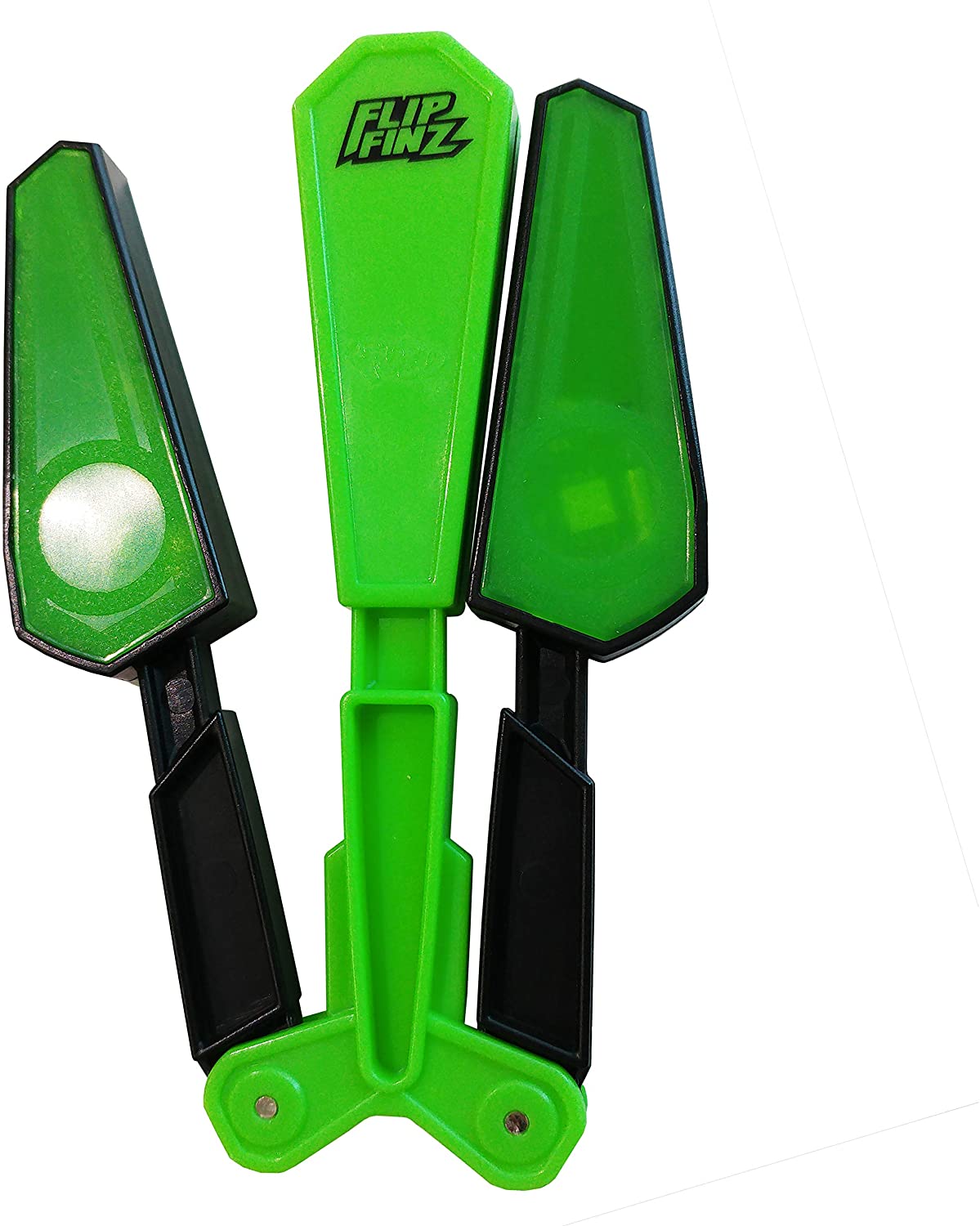Spin it, twirl it or flip it! Any way you choose to twist, turn or twirl it, the flip finz lights up in style. Master your Technique and learn tons of amazing tricks from tutorials on the flip finz you tube channel. Each fin contains a high powered LED that pulses with each move, allowing you to play ALL day and night. Fits in your pocket for on-the-go fun. Suitable for ages 4+