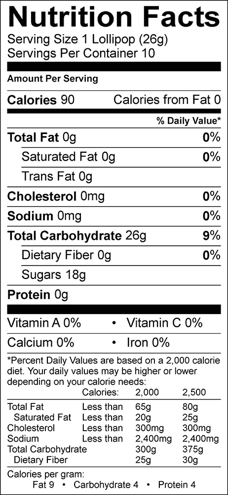 Choose from one of the following flavors: Blueberry|Cinnamon|Coconut|Grape|Grapefruit|Peach|Pear|Pomegranate|Watermelon Each lollipop is individually wrapped. *Please note these are sold individually and styles may vary. Feel free to note in comments section if you have a preference.