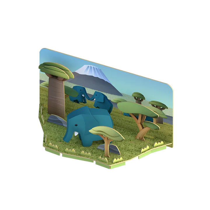 The elephant is one of the largest animals in the world. As an herbivorous mammal, it can eat up to 330 pounds of food in one day! As a HALFTOY, you can open its magnetic shell to find the skeleton, a 6-piece bone puzzle. Each animal figure comes with a diorama that can be linked to other dioramas in the HALF ANIMAL collection. Collect them all and build a scenic animal world!