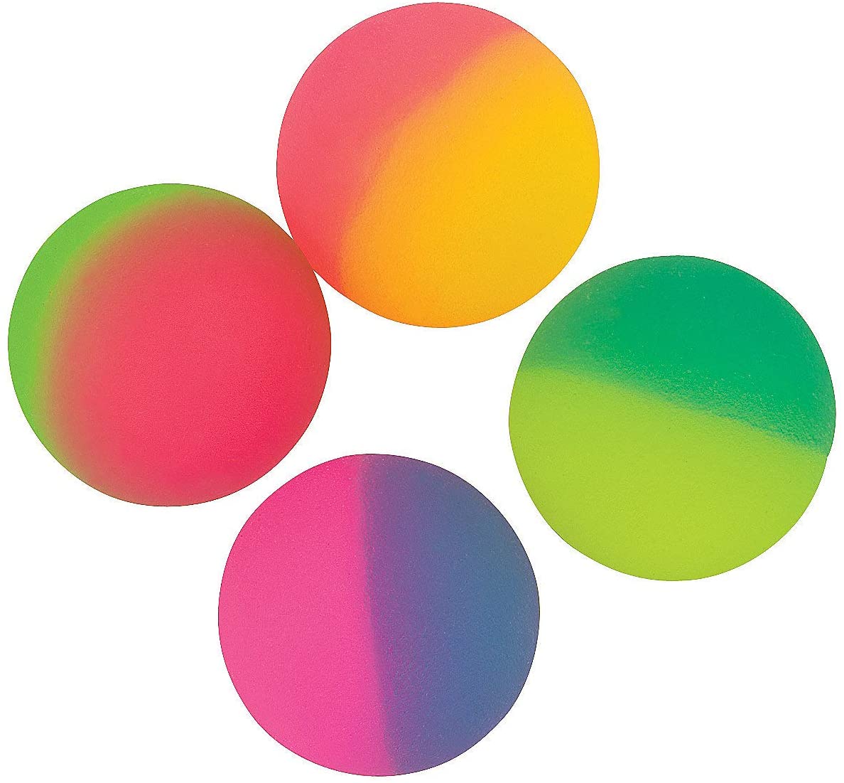 Tthese bouncy balls feature a variety of vivid colors and designs. Each ball measures 1.8 inches in diameter. Sold individually.