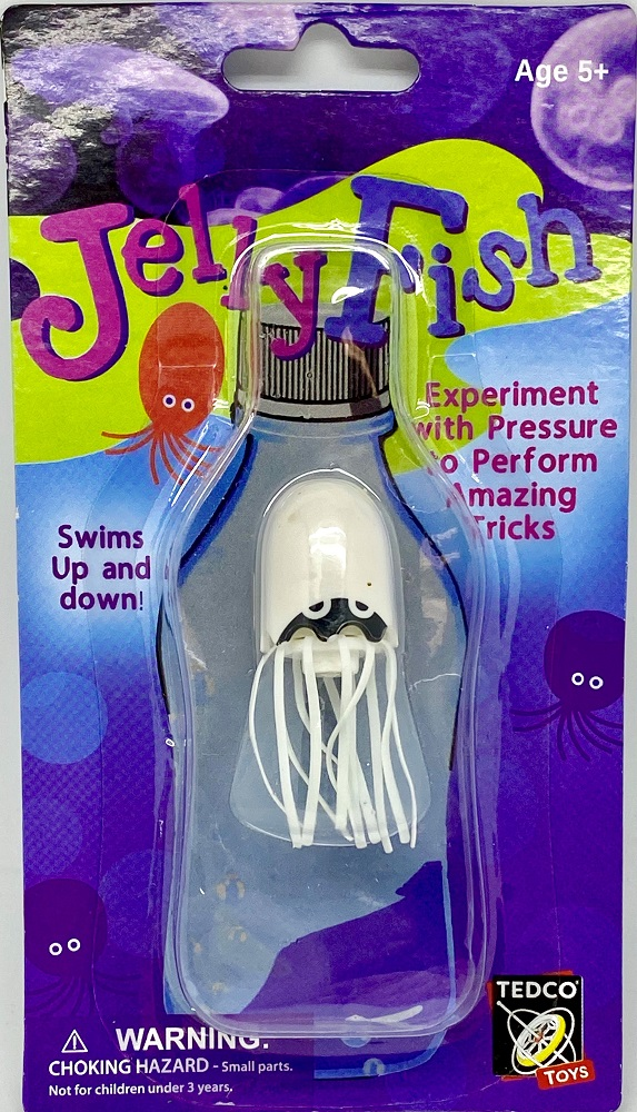 The Magical Jellyfish performs amazing hydro dynamic tricks! First, place the jellyfish in a bottle of clean water. Then, squeeze and watch as jellyfish spins and floats up and down. Assorted colors: Blue, Red or White chosen at random.
