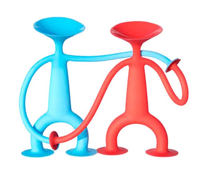 Addictively tactile, surprisingly expressive and invitingly playful; Oogi Jr silly, amusing, engaging fun! 3 inch tall Oogi Jr has suction cup hands, feet and head that easily stick to each other and any flat surface. Let the expressive personality of this deceptively simple toy come alive as you explore innovative ways to connect and pose this stretchy character. Oogi Jr helps develops hand-eye coordination, creativity and imagination! Made of food-grade silicone rubber, and PVC, Phthalate and BPA free, Oogi Jr is teething-safe and easy to clean!