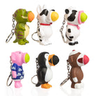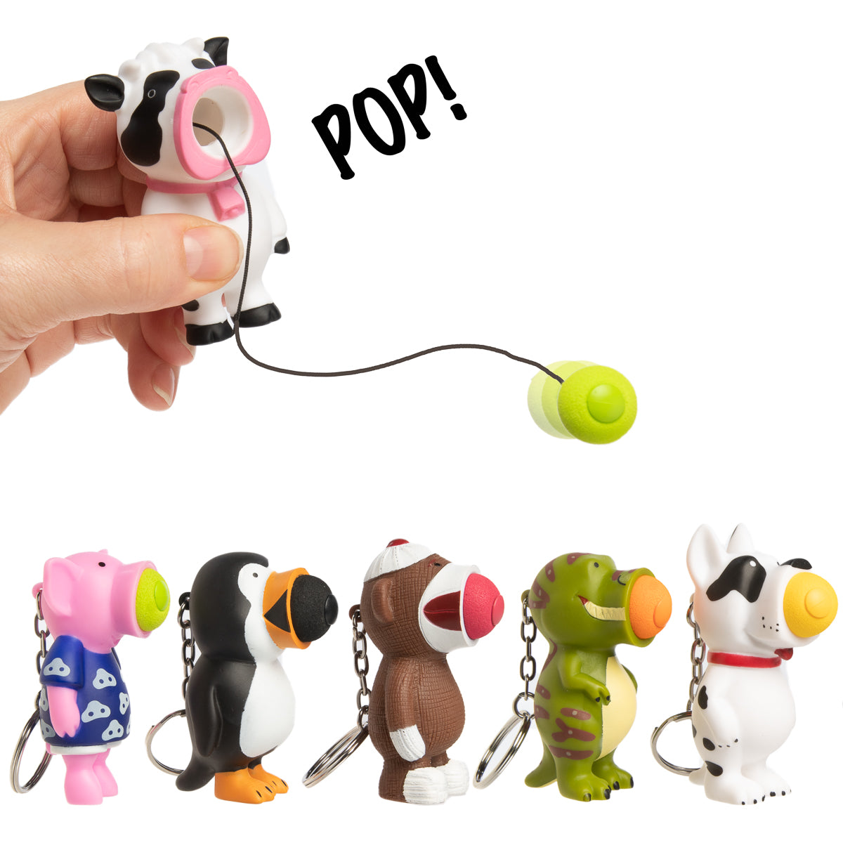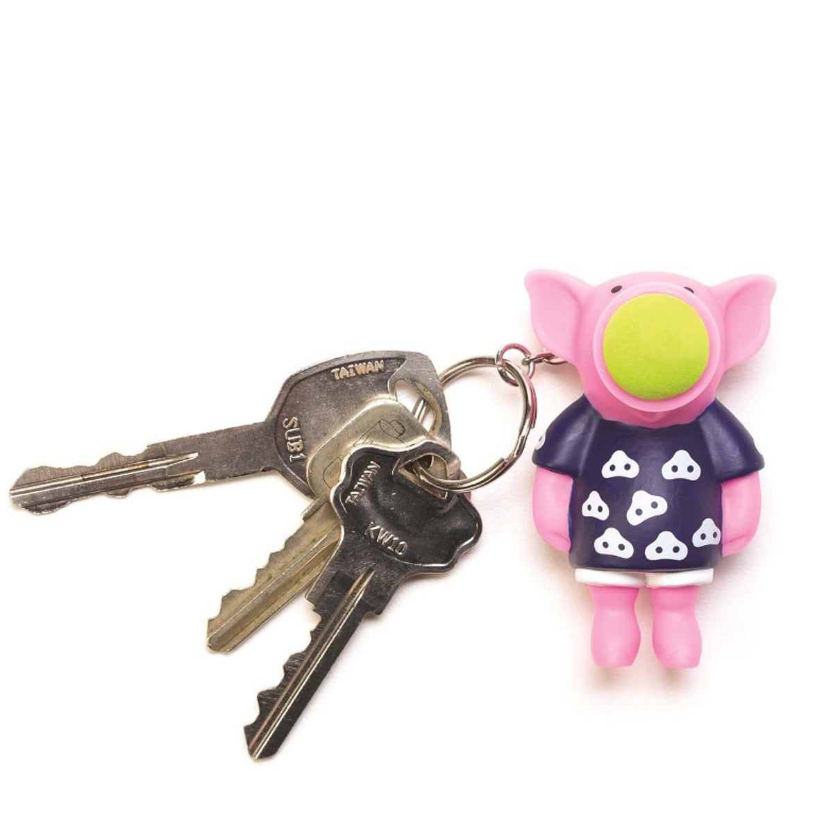 The ball is attached to the string so it can't roll away. Attach this little guy to guard your keys all day long!