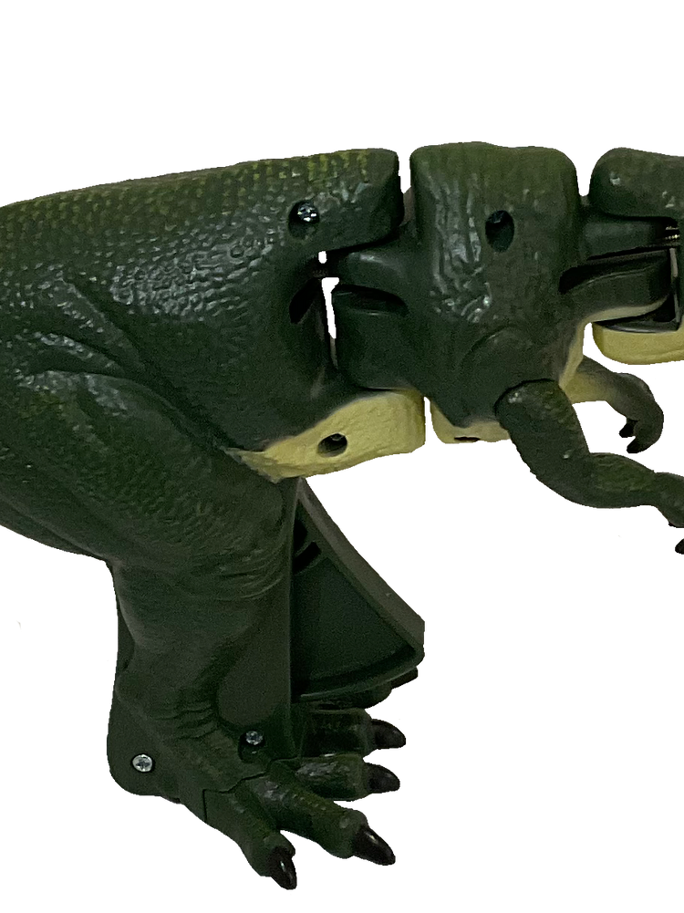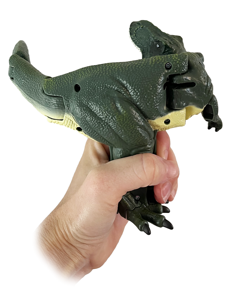 ROAR!!! It's Trigger the T-REX chomping his way to you. This exciting new toy is sure to delight kids and adults of all ages. Pull the trigger and he bends and chomps.