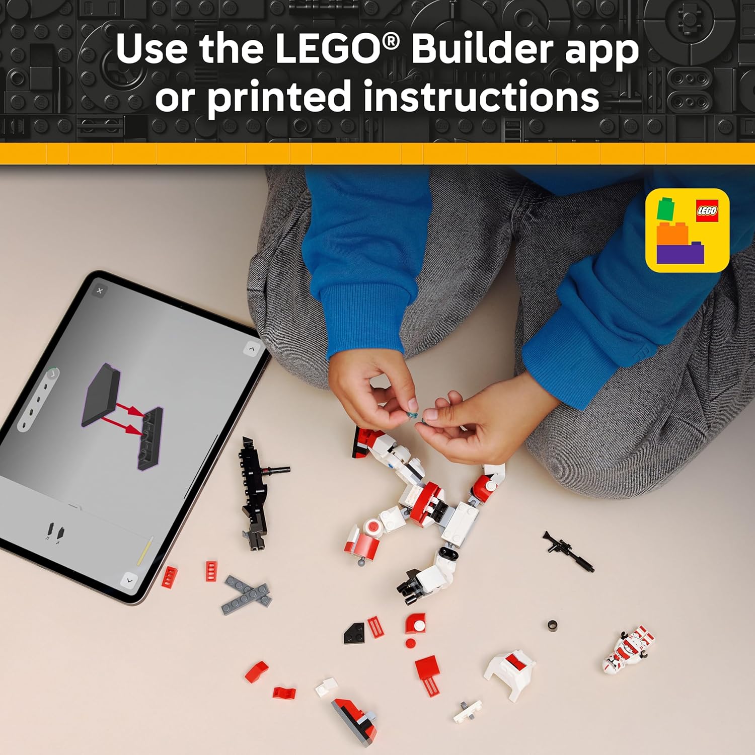 Kids help defend the Republic with the LEGO Star Wars Clone Shock Trooper Mech (75448) building toy for boys and girls ages 6 years old and up. This building set lets kids construct a quick-build, posable mech figure with distinctive red and white Clone Shock Trooper armor. Builders can place the Clone Shock Trooper minifigure in the mech's cockpit, clip its blaster rifle to the back of the mech, and adjust the mech's arms, legs and feet to create dynamic battle poses. The mech features a large blaster rifle with stud shooter that fits in its gripping hands for action-packed battles. This set includes simple instructions ideal for young builders, inspiring hours of pretend play with these Star Wars toys. Makes a fun Star Wars gift, birthday present or anytime treat for boys, girls and fans. The LEGO Builder app includes digital tools that let kids track progress, zoom in and rotate models using 3D instructions. Contains 151 pieces.