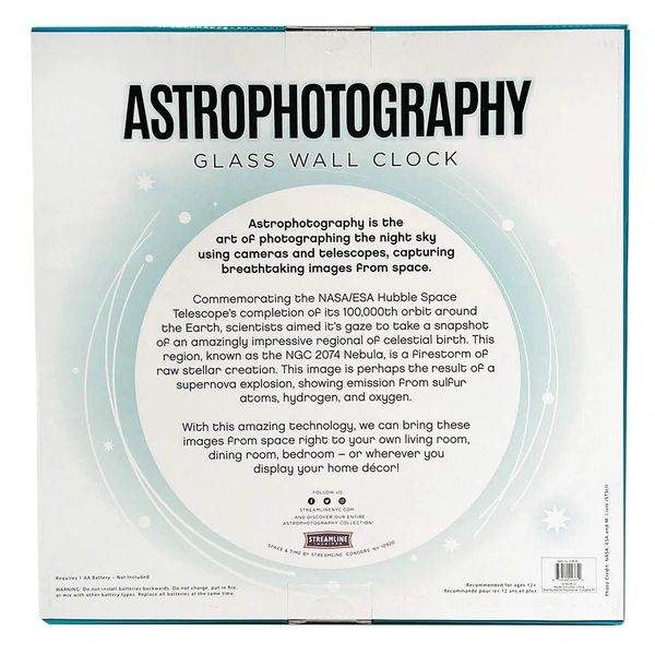 Astrophotography is the art of photographing the night Keeping time doesn't have to be boring. The Astrophotography Glass Clock - Seaglass Firestorm brings the beauty of space across time. Looking at the astrophotography brings new swirls of space to look at at every turn of the hour hands.