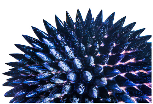 Vibrant colored ferrofluid in a circular bottle. Amaze your friends and distract yourself at the desk with this astonishing magnetic liquid in a bottle.