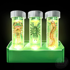 Display creepy crawlies in the light-up test tubes with the KidzLabs - Glow Critter Lab kit. Great for room decoration. 2 x AAA Batteries are required. Each piece is in a color box. 6.6 x 8.5 x 2.3 inches.