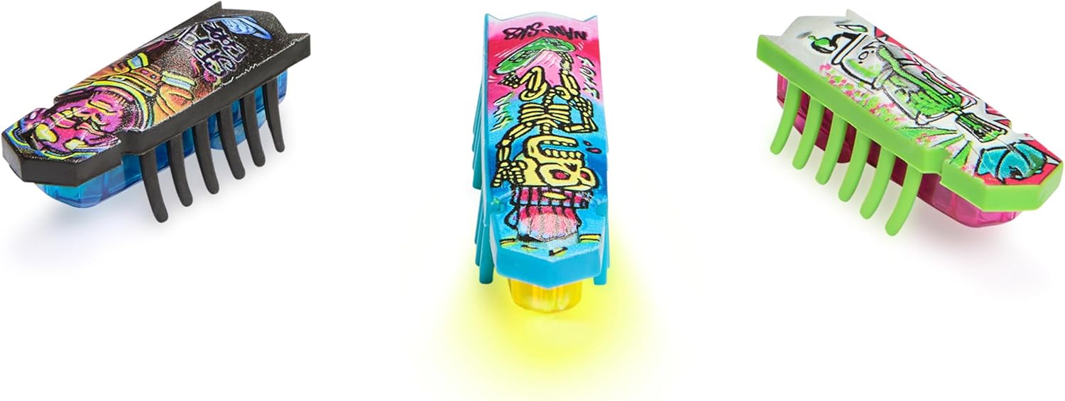 Discover the power of vibration technology as your nano®s bounce off the walls of the new HEX BOTS nano Land! This mix and match construction toys playset includes the newest, fastest Nano yet- Flash Nano, 2 Nanos, and flexible jelly walls to build imaginative playgrounds, racetracks, and more! Kids can add imagination with the street art décor, and add the 2 merry-go-round loop pieces which act as standalone obstacles, for an extra level of fun! These mini robot toys will randomly switch direction, bounce off objects, and explore little nooks and crannies- just like real bugs! The HEX BOTS nano bots are the perfect sensory toy for kids and pets, with light-up fun designs and insect-like crawling motion to keep them engaged. Build your collection of nanos and create your own playground with these learning & education toys! Add tracks and obstacles to create a whole new world of HEX BOTS Nano Bots! Robot toys are a fantastic addition to your collection of RC Insect toys, and great STEM Toys for girls & boys to encourage creativity and passion for building! HEX BOTS Nano Land is compliant with CPSIA standards. Batteries included, recommended for children aged 3 & up.