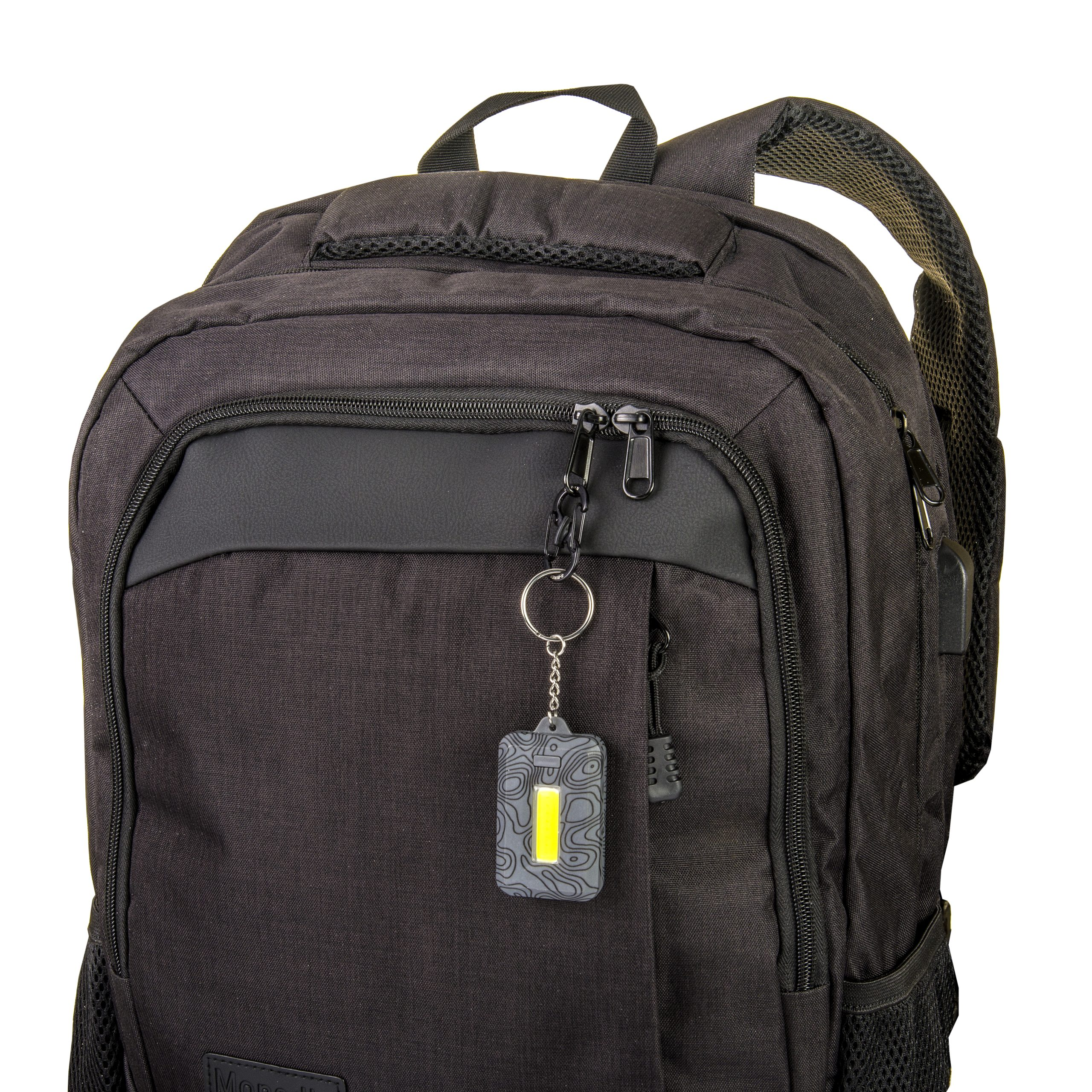 The COB LED Keychain Flashlight with Stainless Steel Keyring, Gray boasts a super-bright COB LED and features 3 modes: high, low & strobe. Use strobe mode for emergency situations or to alert attention. This small and lightweight Keychain Flashlight comes attached to a stainless-steel keyring making it easy to take with you anywhere. Easily attach it to your backpack or outdoor gear, toolbox, leave one in a glove compartment or in your catch-all drawers. Available in three colors with a fun topographic design.