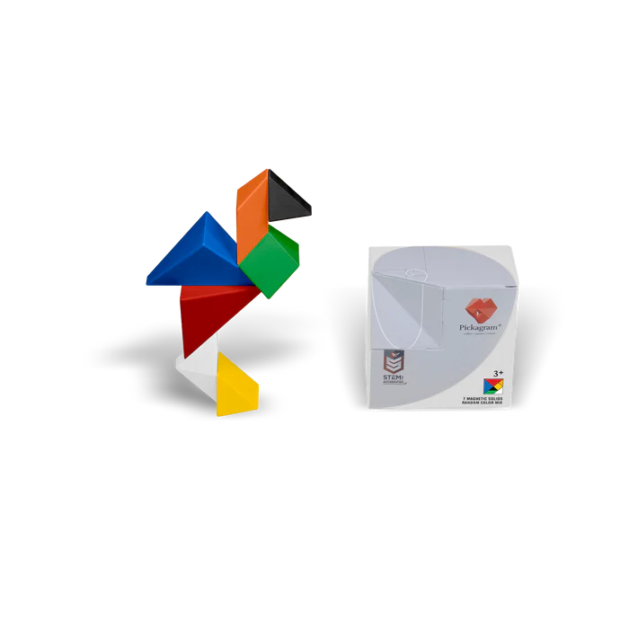 Discover the creative and magical world of Pickagram art with our preselected mix of bright and vibrant colors! Our puzzle helps fans of all ages assemble shapes and build 3D designs for a unique, eye-catching display. Sharp minds and creative spirits can explore hours of rewarding fun! STEM CERTIFED CREATIVE 3D TANGRAM PUZZLE: Children can learn geometric shapes, spatial thinking, and the concept of dimensions. With magnets, it allows over 100 figures, including alphabets, animals, human body and more. FOR ALL GENERATIONS: Away from smartphone and activate your brain. Adults can get mental refreshment and focus. Seniors can enhance cognition, memory, and can be used to prevent dementia. DESIGNED BY ARCHITECTS: Designed by an architect who raises two children in Chicago. UNIQUE and ULTIMATE Tangram puzzle that embodies its own design philosophy. ARTISTIC ITSELF: Perfectly realized in 3D and the golden ratio in selected color. Capturing attention wherever it is placed. It will decorate your desk, shelf, and any prominent spot. PORTABLE HAND-SIZED FIDGET: Carry whether it's school, in the car, or anywhere. Click sound when the rotating strong magnets come together adds to the enjoyment and satisfaction it brings.
