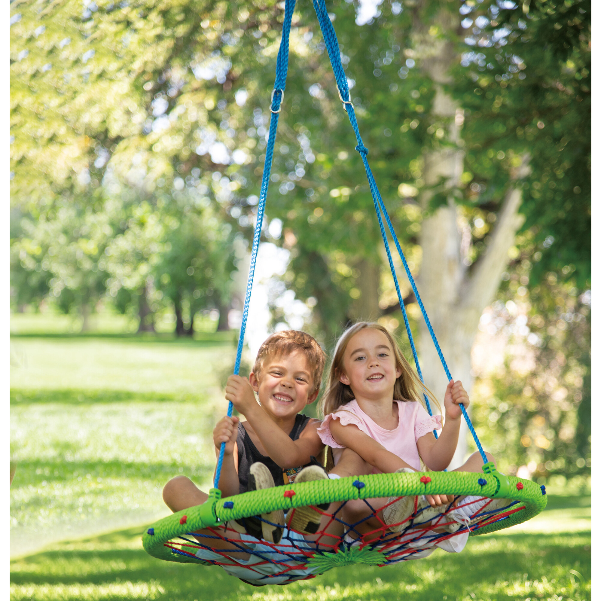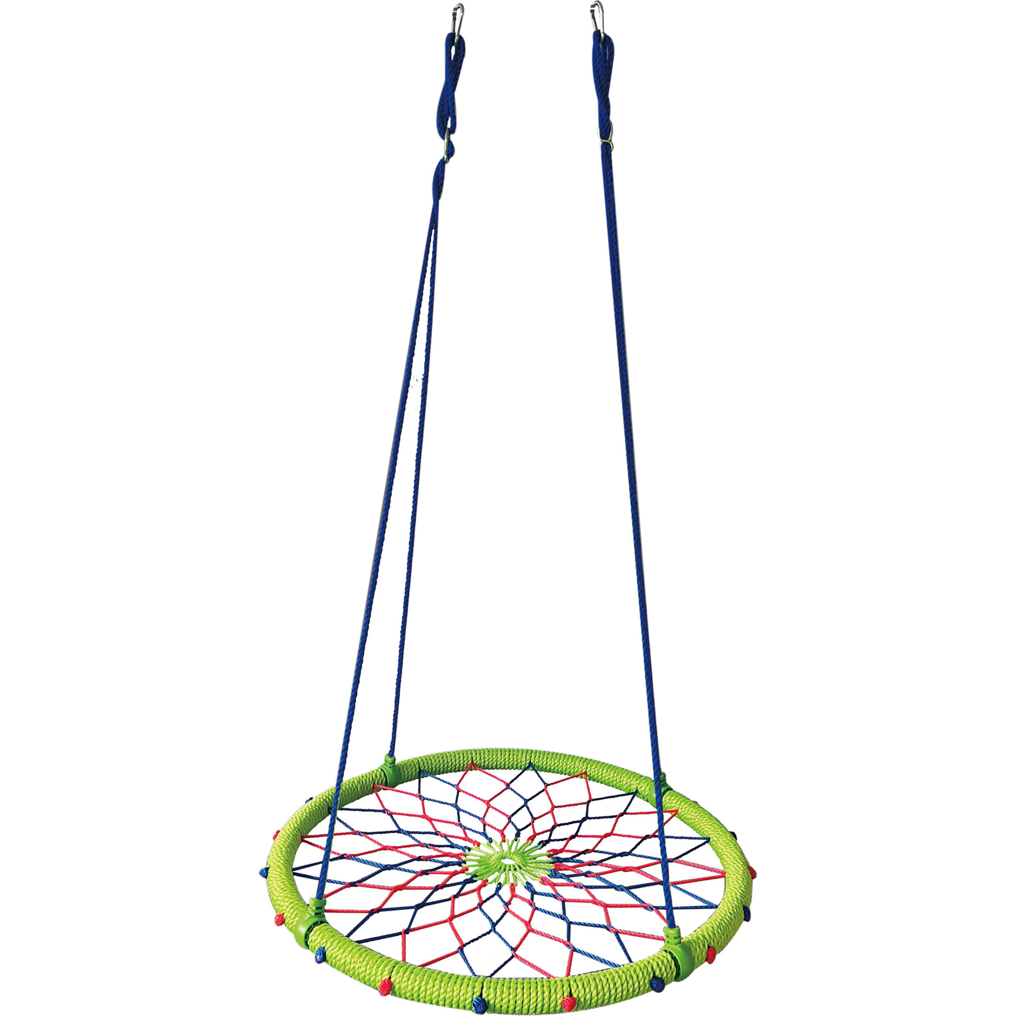 An attractive colorful woven dreamcatcher pattern creates an enticing swing for both kids and adults! This swing adds a touch of whimsical elegance to any outdoor setting, making it the perfect focal point for backyard adventures and leisurely afternoons. EFFORTLESS ASSEMBLY: Simple snap together assembly. PREMIUM QUALITY CONSTRUCTION: Crafted with durability in mind, our Dreamcatcher Swing is built to last. Made with a core steel ring, heavy-duty adjustable PE UV-resistant ropes, and hanging carabiners. ELEVATE YOUR OUTDOOR SPACE: Transform your backyard into a sanctuary of serenity and fun with our Dreamcatcher Swing, an essential addition to any outdoor oasis where laughter, adventure, and relaxation await. UNLEASH YOUR INNER ADVENTURER: Perfect for backyard parties, family gatherings, or simply enjoying quality time outdoors, this swing encourages active play, boosts confidence, and creates unforgettable memories that last a lifetime. TRESLINES: Where the fun grows on trees. Experience nature like never before with treslines.