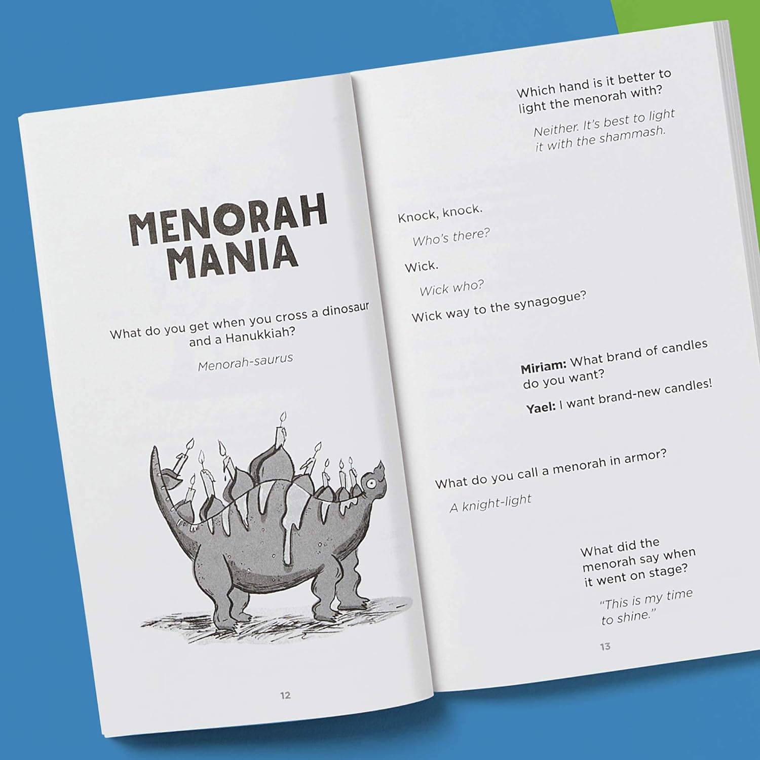 This entertaining collection of jokes about Hanukkah, plus other favorite Jewish festivals, will make kids laugh throughout the year. Perfect for kids 6-12, this clever humor collection features over 500 rib-tickling jokes about Hanukkah and other Jewish holidays, plus lots of hilarious black-and-white illustrations to round out the fun.