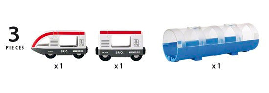 The BRIO World 33890 Travel Train & Tunnel opens a world of exciting new destinations. The modern toy train will take you anywhere your imagination cares to roam. And with room for 3 poseable figures in the engine and passenger wagon, it’s time to invite your favourite BRIO friends on-board. The clever packaging around the Travel Train also transforms into a stylish see-through tunnel – just place it into any BRIO World wooden railway track and off you go. Bon voyage