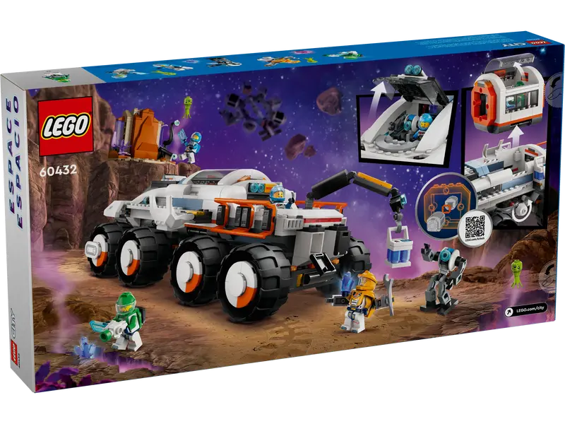Set the stage for planetary exploration with the LEGO® City Command Rover and Crane Loader (60432) outer space toy for ages 7+. This futuristic 8-wheeled vehicle has everything kids need for exploring distant planets, including big tires, sample storage hatches, a crane arm and a pod bay for docking the air-lock laboratory. The playset also includes a planet scene where explorers can discover alien plants and an energy crystal. Just add the 4 space crew minifigures and robot and alien action figures for epic space adventures. Take your youngster on an exciting building adventure with the LEGO Builder app. Here they can zoom in and rotate sets in 3D to visualize models from all angles as they build. LEGO City space sets come with realistic vehicles, detailed structures and inspiring characters for imaginative play without limits. This set includes a special space air-lock element for connection to other compatible space-themed LEGO playsets (sold separately) for even bigger adventures! Planet rover outer space toy for kids – Navigating new worlds is fun with this LEGO® City Command Rover and Crane Loader playset for boys and girls aged 7 and up What’s in this space exploration playset? – An 8-wheeled rover vehicle, a planet scene with plants and a toy crystal, 4 space crew minifigures and a robot and 2 alien action figures Digital construction guide – Take your little space enthusiast on a fun building adventure with the 3D LEGO® Builder app, which lets kids view models from all angles as they build Fun functions for young space explorers – Kids can lower the special air-lock laboratory into the pod bay, hoist items with the crane and store toy crystals and samples in the rover’s hatches A fun gift for space fans– Give this playset as a holiday or birthday gift for space enthusiasts and fans of cool toy vehicles aged 7 and up Connect to other LEGO® playsets for more adventures – The laboratory pod in this set features the space air-lock system for connectionto other compatible sets (sold separately) in the range Limitless play – LEGO® City space playsets come with realistic vehicles, detailed structures and inspiring characters that merge fantasy and reality for imaginative play without limits Dimensions – The space rover in this 758-piece set measures over 4.5 in. (11 cm) high, 13 in. (33 cm) long and 5.5 in. (14 cm) wide