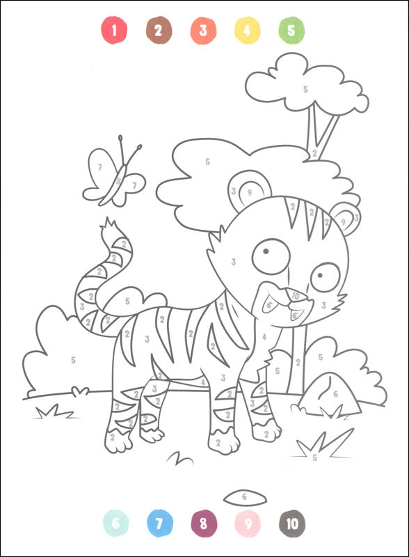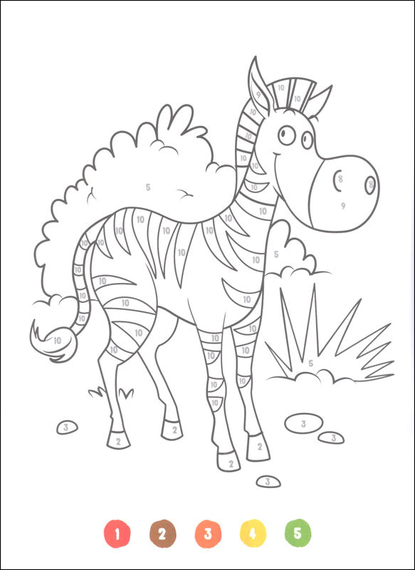 This adorable color by number book features large, cute illustrations of a zebra, monkey, giraffe, lion, and other animals that are perfect for early learners. A palette on each page with colors numbered 1 through 10 makes it easy to follow the directions. In addition to being chock-full of coloring fun, the book is ideal for teaching kids about colors and numbers.