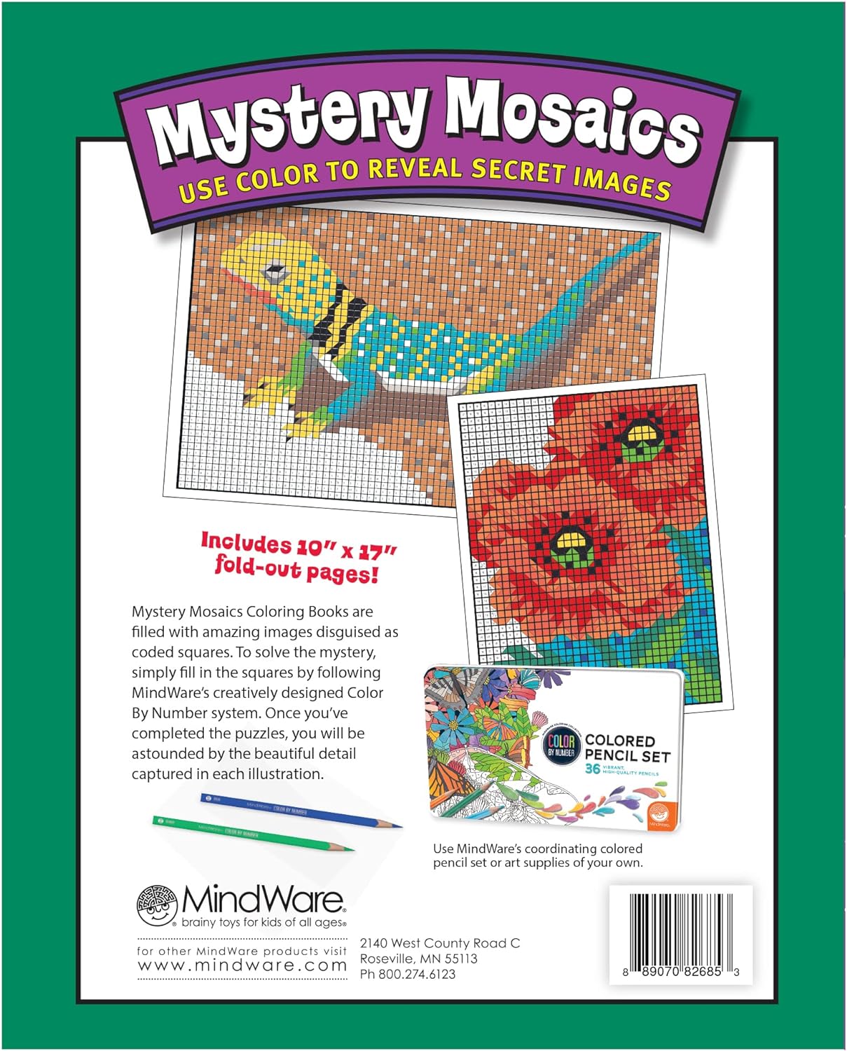 Designed to build the visual perception skills of the most creative puzzlers, Mystery Mosaics: Book 3 is filled with 18 amazing images disguised as numbered squares. At first glance, you will have absolutely no clue what each completed picture might turn out to be...follow the number guide, apply color, and watch an incredible mosaic design take shape! Featuring 18 perforated pages including 4 fold-out, 10" x 15" double-page spreads, this new book pairs perfectly with our brilliantly-hued, 36-count Colored Pencil Set (sold separately). The book and pencils are printed with coordinating numbers to make your coloring experience even more relaxing and enjoyable.