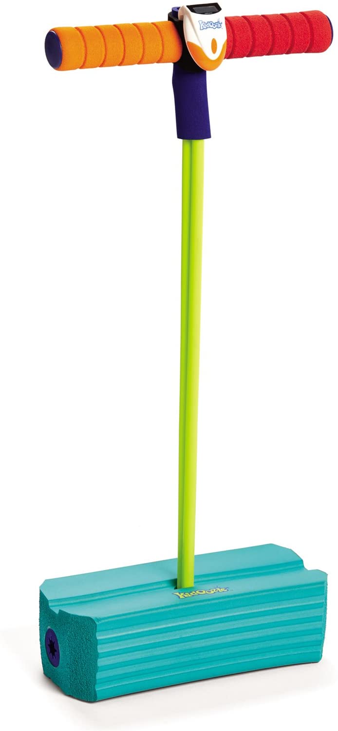 Who can jump the most? The new counting pogo jumper digitally counts every hop as it squeaks! The stretchy bungee fits any height and the pogo jumper is made of soft, durable foam which supports up to 250 pounds, so mom and dad can join in too! Great for indoors or out! With comfortable handles and a soft, cushiony base, your child can safely use our Counting Jumper indoors and outdoors. It won't even leave scuff marks on surfaces like hardwood floors! Jumping fun for everyone!