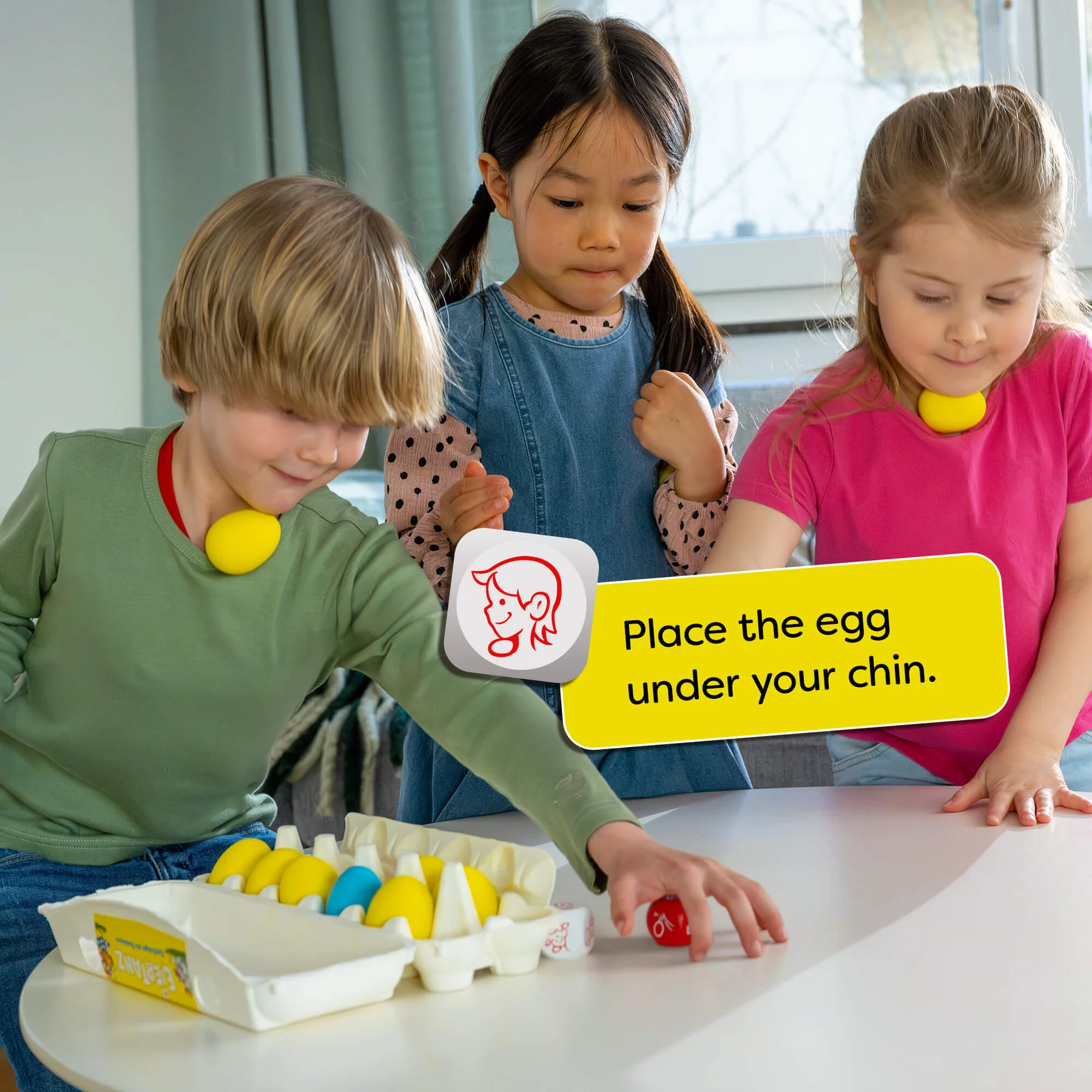 What’s in the Box: 9 rubber eggs, 1 wooden egg, 2 dice, rulebook with game instructions
