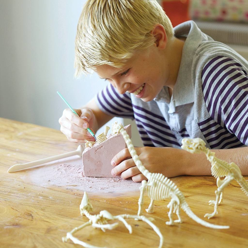 Be a paleontologist, dig and excavate the skeletons of the gigantic animals which ruled the Earth in prehistoric times. Assemble the skeleton, pose and display. It's so cool. Each Dig-a-Dino kit contains a plaster block with embedded skeleton, a special digging tool, brush, detailed instructions, fun facts related to the Stegosaurus, and a Kidz Quiz (10 questions and answers about dinosaurs).