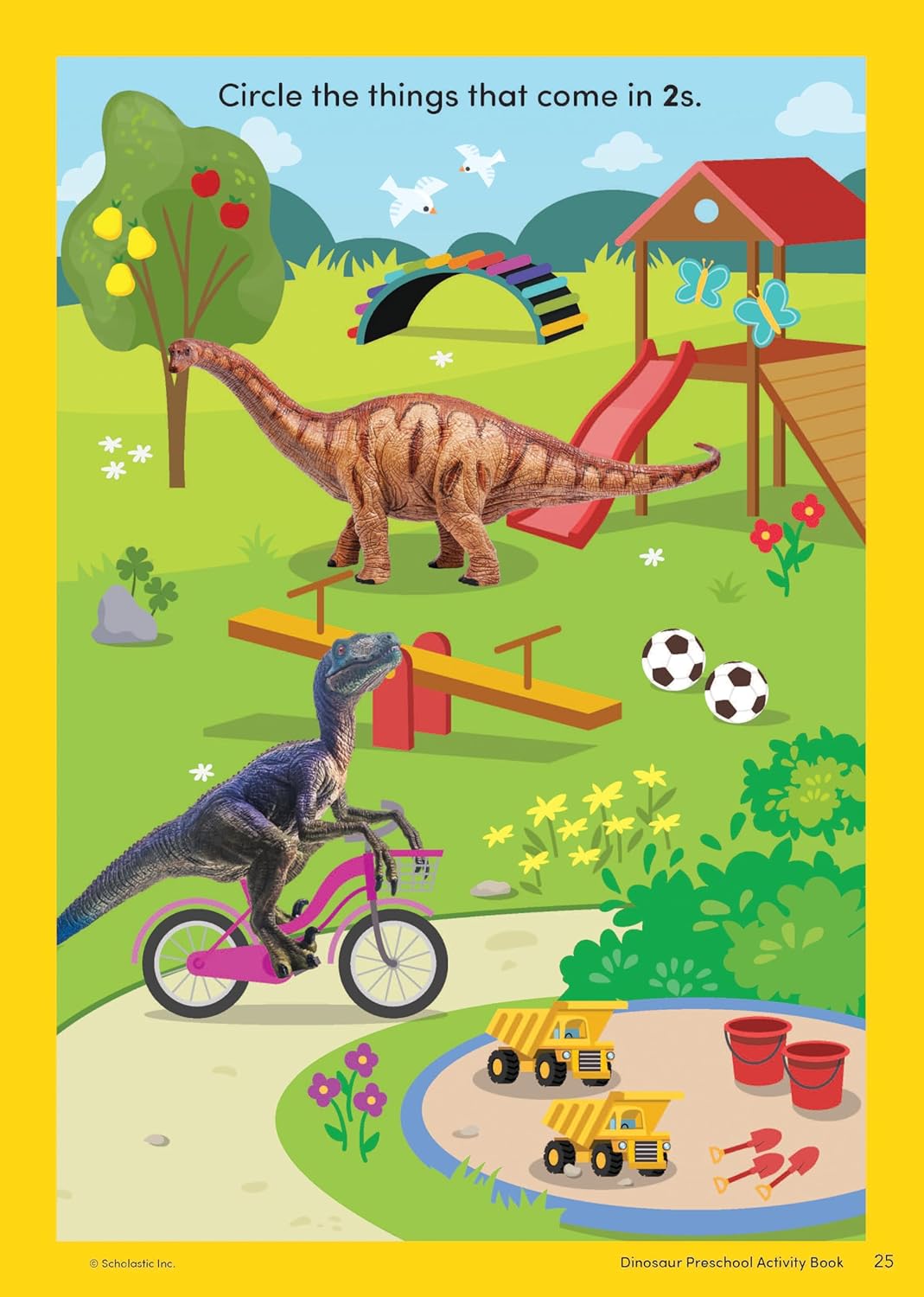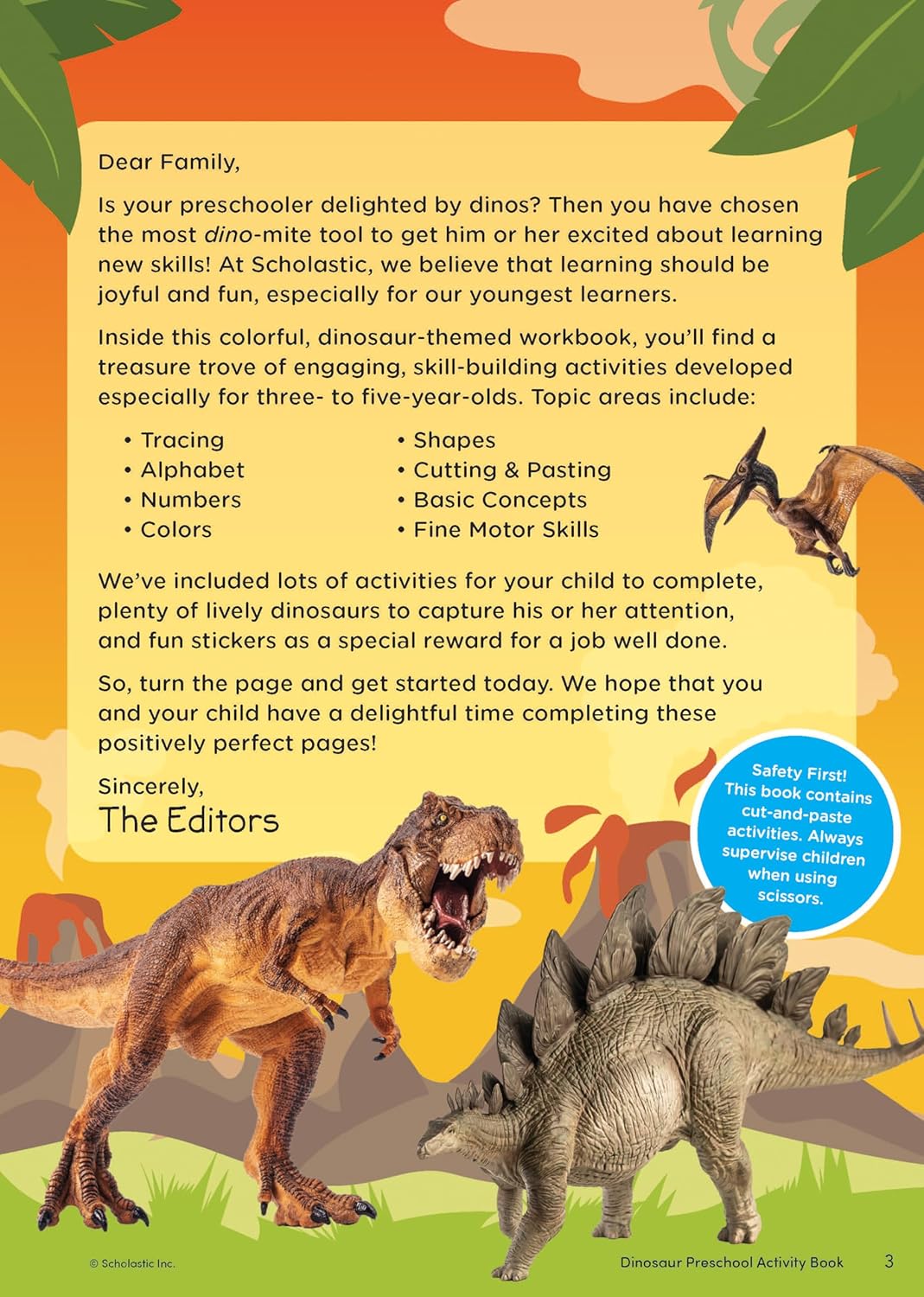 Dino-loving kids will get a kick out of this engaging activity book full of stegosauruses, allosauruses, T. rexes, and more! Budding learners practice writing upper- and lowercase letters and build early math and literacy skills. What’s more, the book is packed with games, matching activities, and hidden pictures that make learning fun! Children will love the 144 pages full of dino-mite activities, just right for preschoolers.