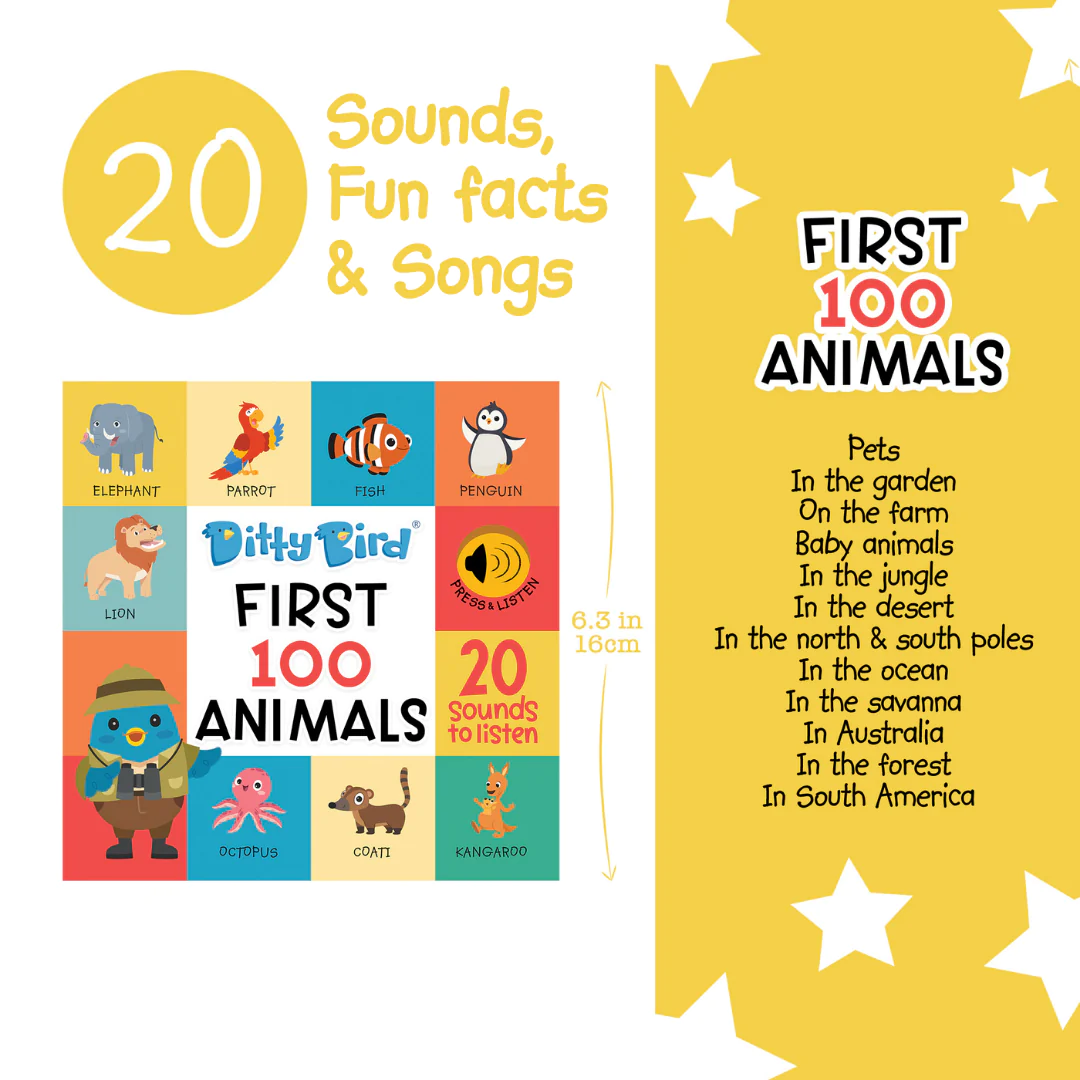Ditty Bird First 100 Animals Board Book