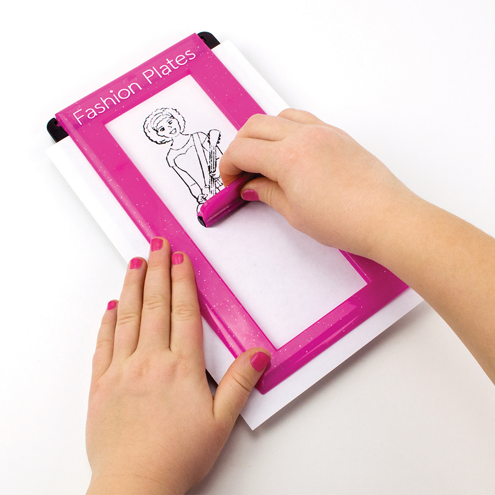 Everything you love about classic Fashion Plates Deluxe with an all-new superstar edge! Featuring rockin’ guitars, microphones, and stage-ready fashions, aspiring designers can create mix and match pop star looks that are sure to blast to the top of the charts! Pack everything neatly in the trendy portfolio case and hit the road! Compatible with other Fashion Plates sets.