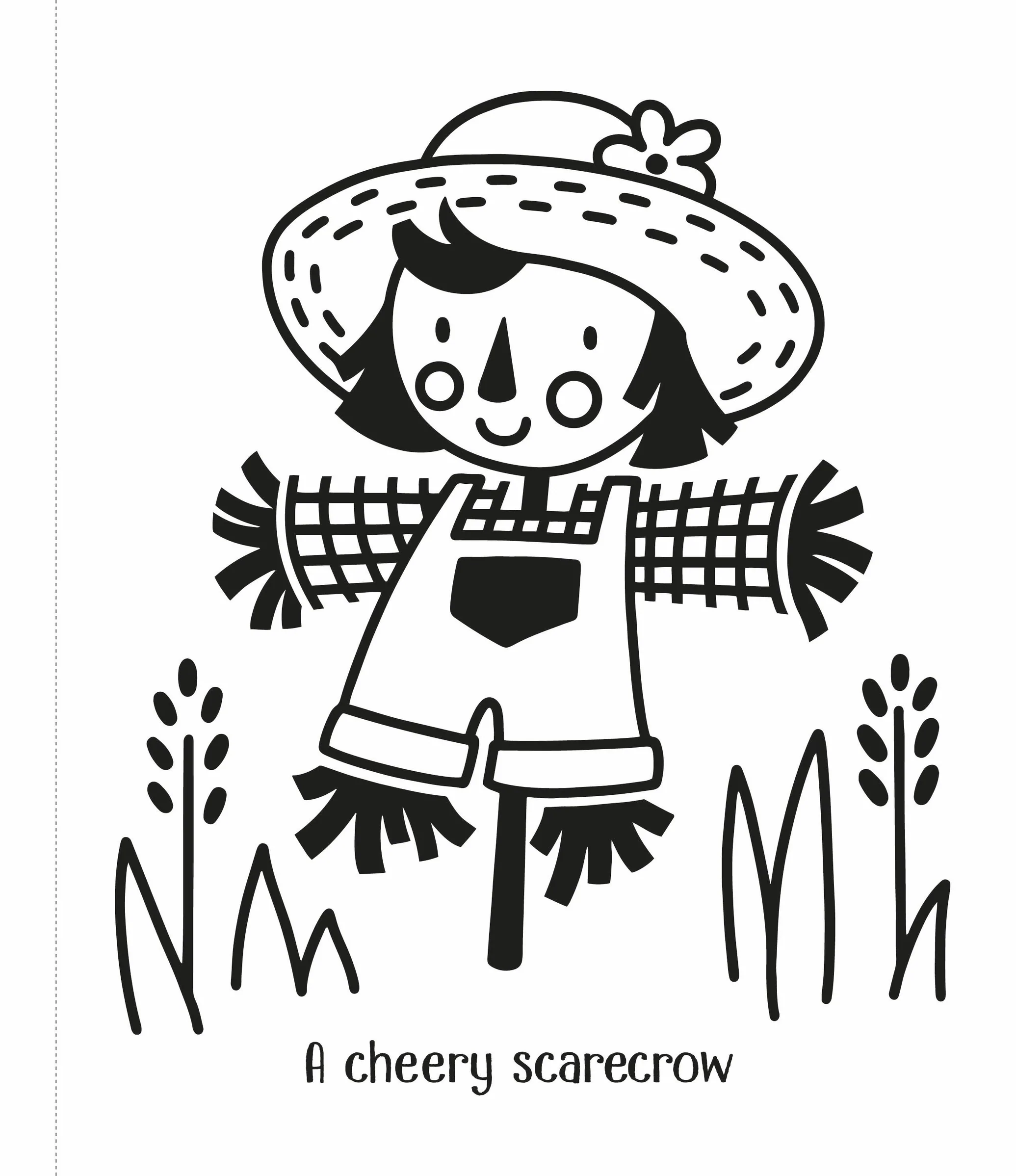 Filled with simple, stylish images designed to appeal to young children. Just brush water over the bold black and white designs to watch a sturdy tractor, a smiling scarecrow, and a cheepy chick burst into color.