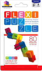 Flex your mind with Brainwright Flexi Puzzle, the bendy, stretchy brain-teaser that helps encourage spatial and three-dimensional thinking. Ideal for kids ages eight years and up, this deceptively simple puzzle consists of 12 colorful cubes, connected via an elastic string, and can be bent in every direction. Use the included challenge book to choose from 80 different challenges and four levels of difficulty as you move your way from beginner to master.