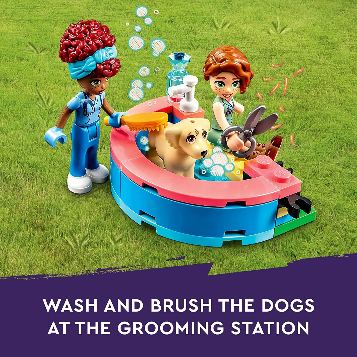 Little dog lovers will have lots of fun creating their own pup-inspired tales with this LEGO Friends Dog Rescue Centre (41727) animal playset. Kids Ages 7+ years old join the next generation of LEGO Friends to care for cute animals. This vet toy for kids includes everything young builders need to care for the pooches who are waiting to be adopted and features LEGO Friends Autumn, Zac and Dr Gabriela Silva mini-dolls plus 3 toy pets and loads of pet care accessories including toys, scales, medicine, food, water, a magnifying glass, bed, brush and more. Animal lover Autumn knows her friend Zac adores dogs too, so she’s kindly invited him along to the dog rescue center, where pups Pickle, Dash and Grace are all waiting to be adopted. Kids can help the characters wash and brush the dogs at the grooming station. Then help Dr Gabriela give them a health check in the treatment room. Uh oh! It looks like cheeky Dash has dug a hole! Kids can keep him busy on the obstacle course or play on the slide in the LEGO Friends puppy playground. What a fun day! Kids can enjoy an easy and intuitive building adventure with their creative toys on the LEGO Builder app. Here they can zoom in and rotate models in 3D, save sets and track their progress. Kids can make friends, discover exciting locations and act out real-life adventures in the LEGO Friends universe with the next generation of Heartlake City. Little animal lovers will love this toy vet set as a birthday gift or any-occasion toys for kids Ages 7+ years old. The Dog Rescue Centre measures over 7 in. (18 cm) high, 10.5 in. (26 cm) wide and 8 in. (20 cm) deep. Contains 617 Pieces.