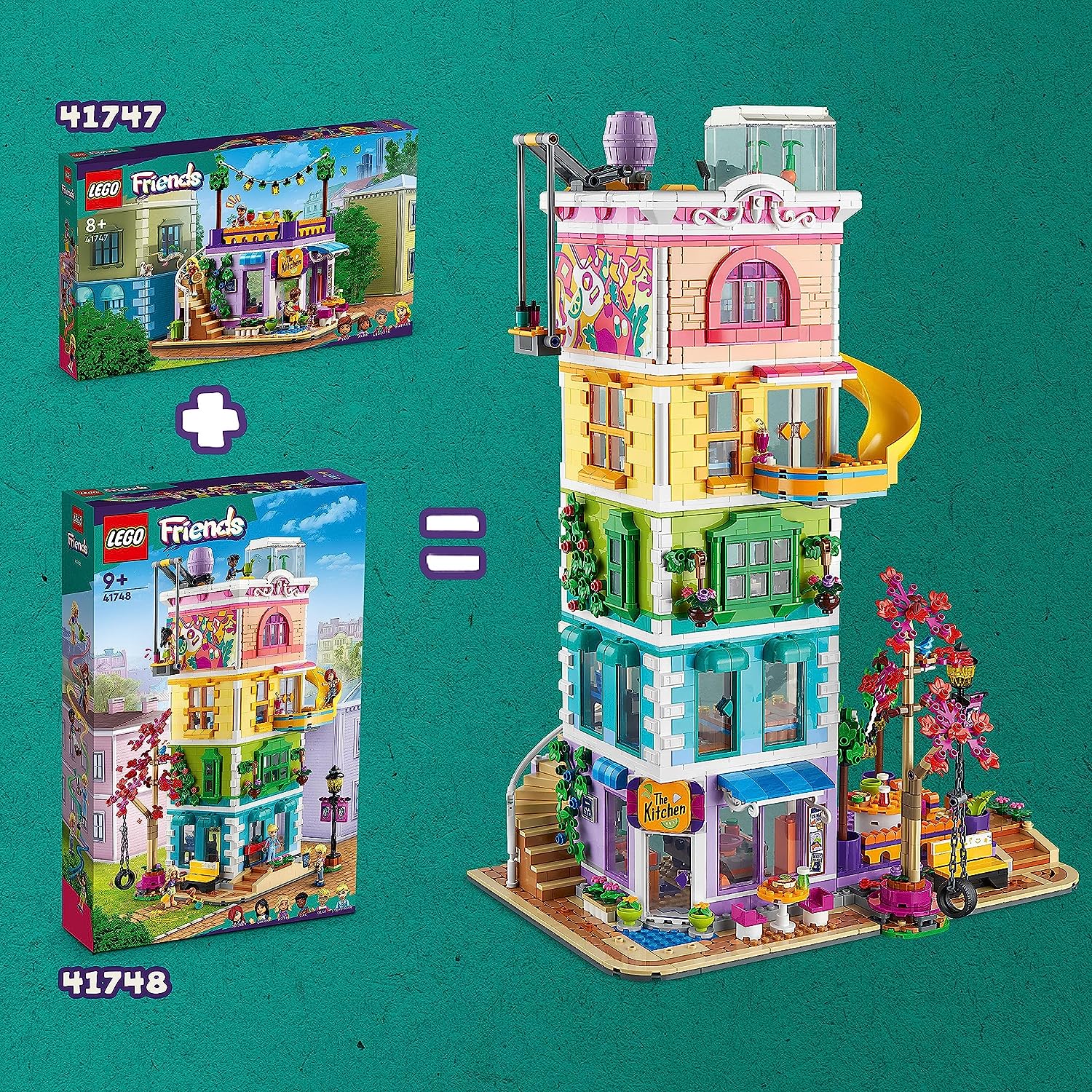 Kids ages 9 and up can explore creative hobbies like art and music at the LEGO Friends Heartlake City Community Center (41748). The levels of the toy building can be rearranged so kids can tailor the build. Songwriter Paisley loves to hang out in the music room. Olly spends time in the recording studio, while artistic Liann feels at home in the art studio. Over in the chill-out zone, gamers Nova and Zac can enjoy playing video games. Kids will love exploring the friendship stories through the different areas. The 4 floor set comes with 6 mini-dolls, a pet dog and lots of accessories. The set combines with the LEGO Friends Heartlake City Community Kitchen (41747) for even bigger stories. Great fight for 9 year old kids that love to build. Kids can enjoy an intuitive building adventure with the LEGO Builder app. Here they can zoom in and rotate models in 3D, save sets and track their progress. Meet the next generation of Heartlake City who inspire kids to develop their passions as they explore the new world of LEGO Friends with its diverse cast of characters. Contains 1,513 pieces.