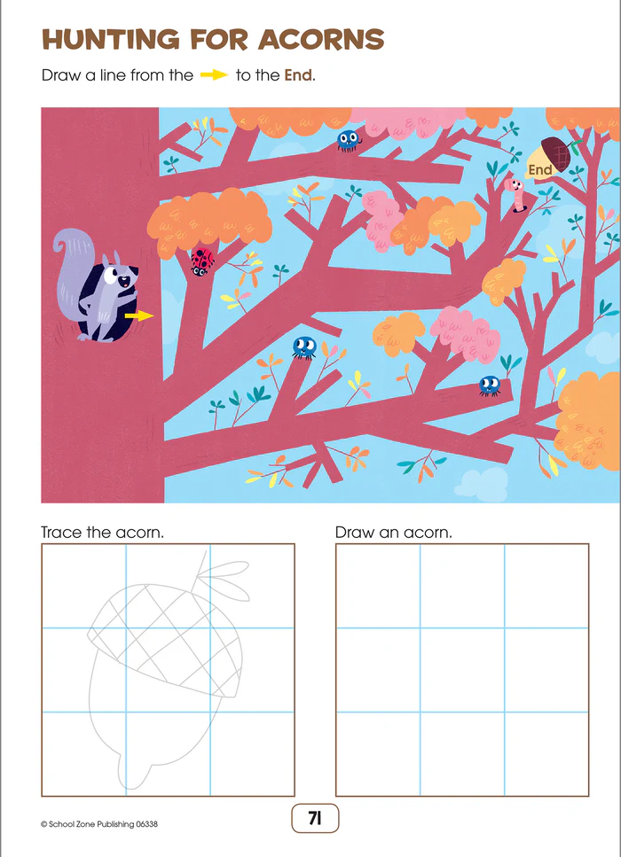 Give your kindergartner an outstanding learning adventure! Little ones learn super fun facts and stretch their imagination as they explore creative, colorful activities such as Prehistoric Egg Hunt, Crustacean Elation, River Life Cutouts and Orangutan Hang Time. They can even learn to draw ducks and dragonflies and put them on a pond! This confidence-boosting, boredom-busting activity workbook is packed with some of kids’ favorite activities: hidden pictures, mazes, dot-to-dots, codes, puzzles, cutting and folding activities, and more. All of them are teacher-reviewed and age-specific. Develop problem-solving skills, visual perceptual skills, beginning reading and early math skills, eye-hand coordination, and the fine motor skills needed for writing. Perfect for entertaining kids whether they are traveling or learning at home.