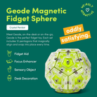 On-the-desk or on-the-go, Geode is the perfect fidget desk toy. Each set includes either 12 pentagons or 12 triangles that align and snap into place perfectly every time. Combine colors and shapes for bigger builds and more fun!
