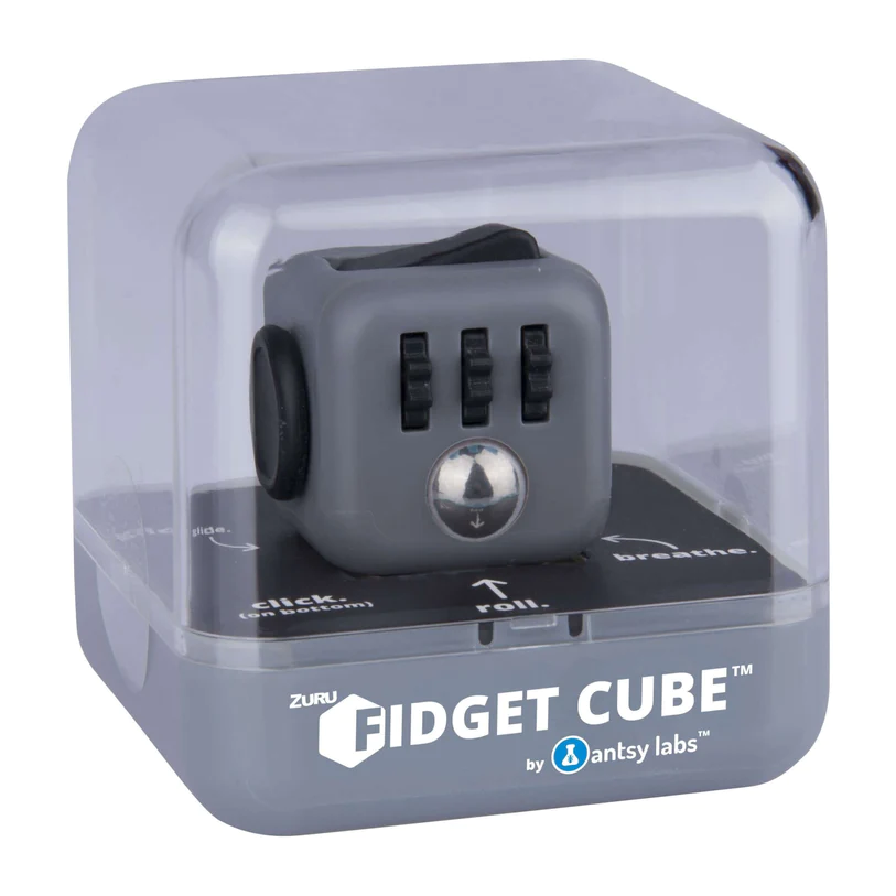 Fidget Cube™, the original fidget toy, has six different sides for fidgeting: Click. Glide. Flip. Breathe. Roll. Spin™. We made Fidget Cube™ for fidgeters like us, people with restless hands who enjoy playful ways to occupy our hands and fingers.