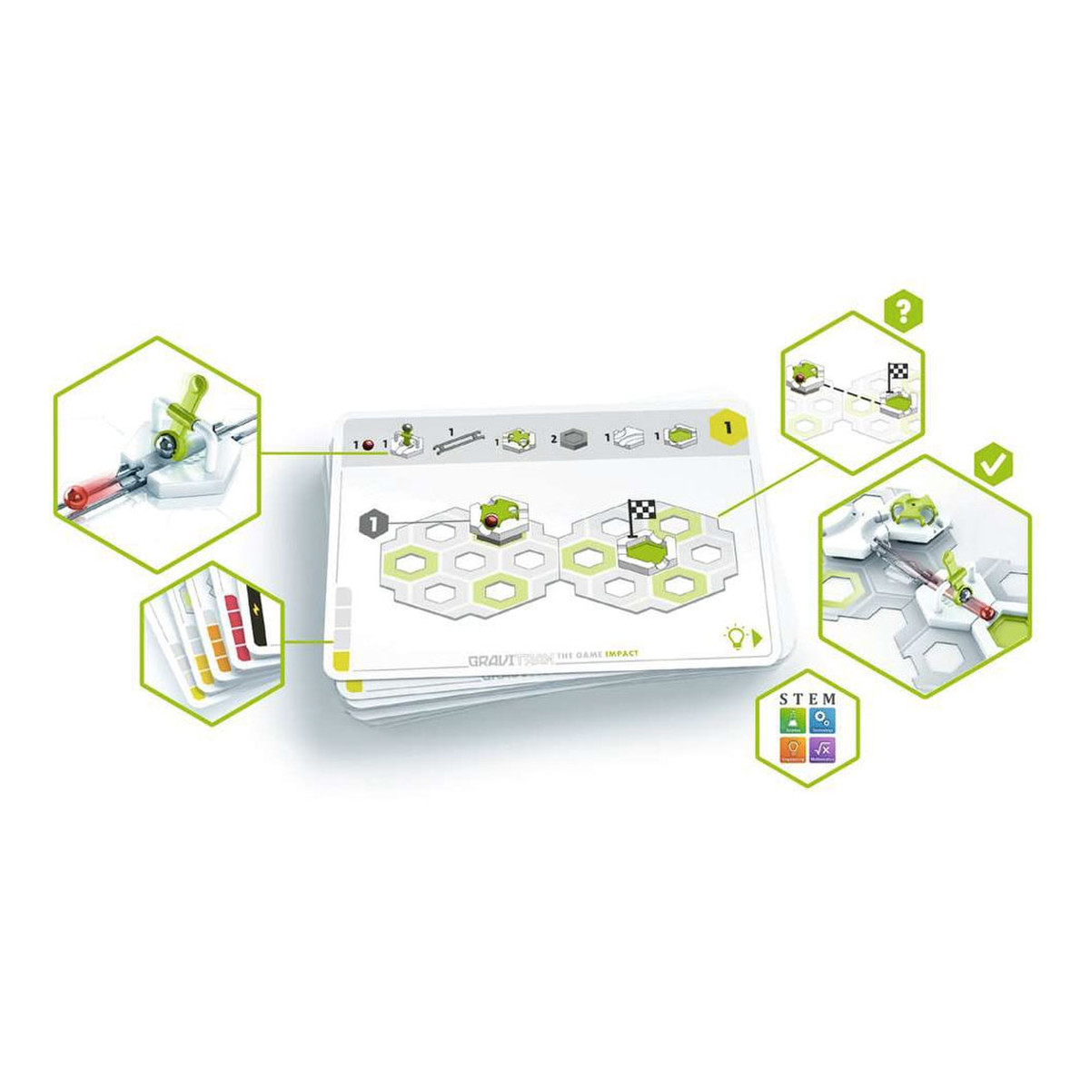 Take the fun of building with Gravitrax and mix it with the challenge of a logic puzzle - that's Gravitrax Impact! There are 30 challenges to solve, in increasing levels of difficulty, through building with Gravitrax pieces. Set contains 30 pieces and is compatible with all other Gravitrax games and building sets.