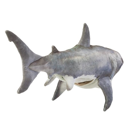 Get swallowed whole in fun puppet antics with the Folkmanis® Great White Shark! Realistic details feature unique custom printed shark skin and an articulated swallowing mouth for lively and active amusement.