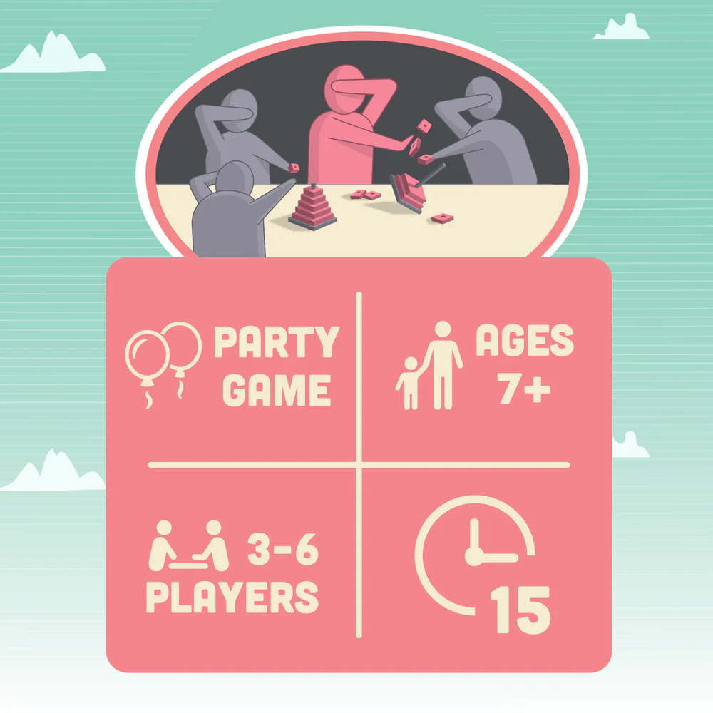 In this game, everyone has a secret identity, either good or bad. Play by scattering the bricks into the play area and closing your eyes. Good Wombats build towers. Bad Wombats secretly sabotage those towers. Vote to eliminate the most suspicious wombat. Complete the towers to win. This is a social deception game for people who aren’t into social deception games.