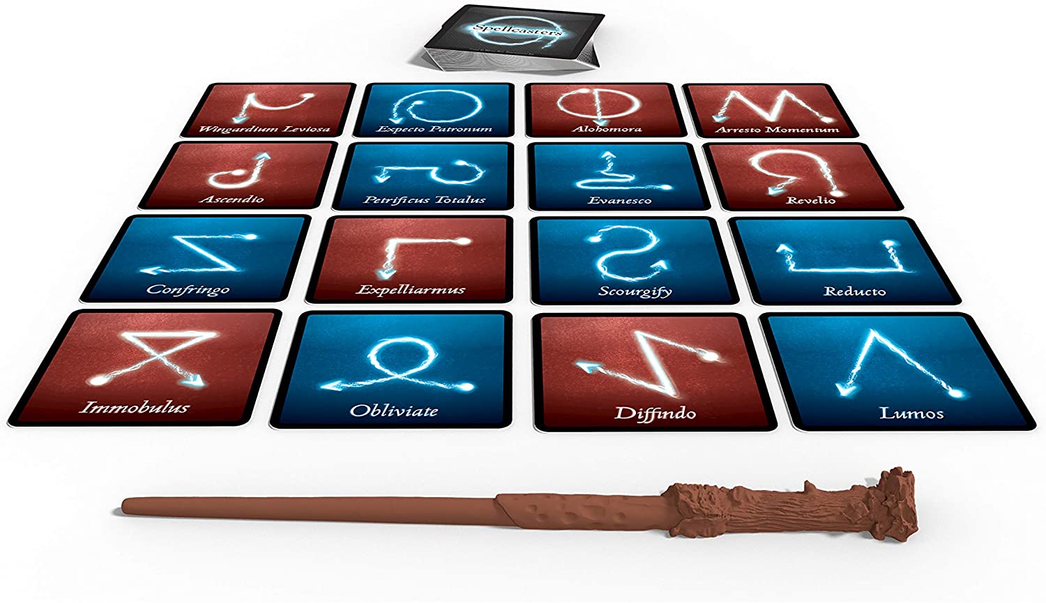 A charade game with a magical spin! Are you ready for some WAND-erful fun? The Spellcaster draws a card that has a magical spell printed on it, keeping it hidden from view of their teammates. Using the wand, they trace the shape of the spell in the air. The first person who guesses the correct spell gets to keep the card and become the next Spellcaster! Collect the most spell cards to win!