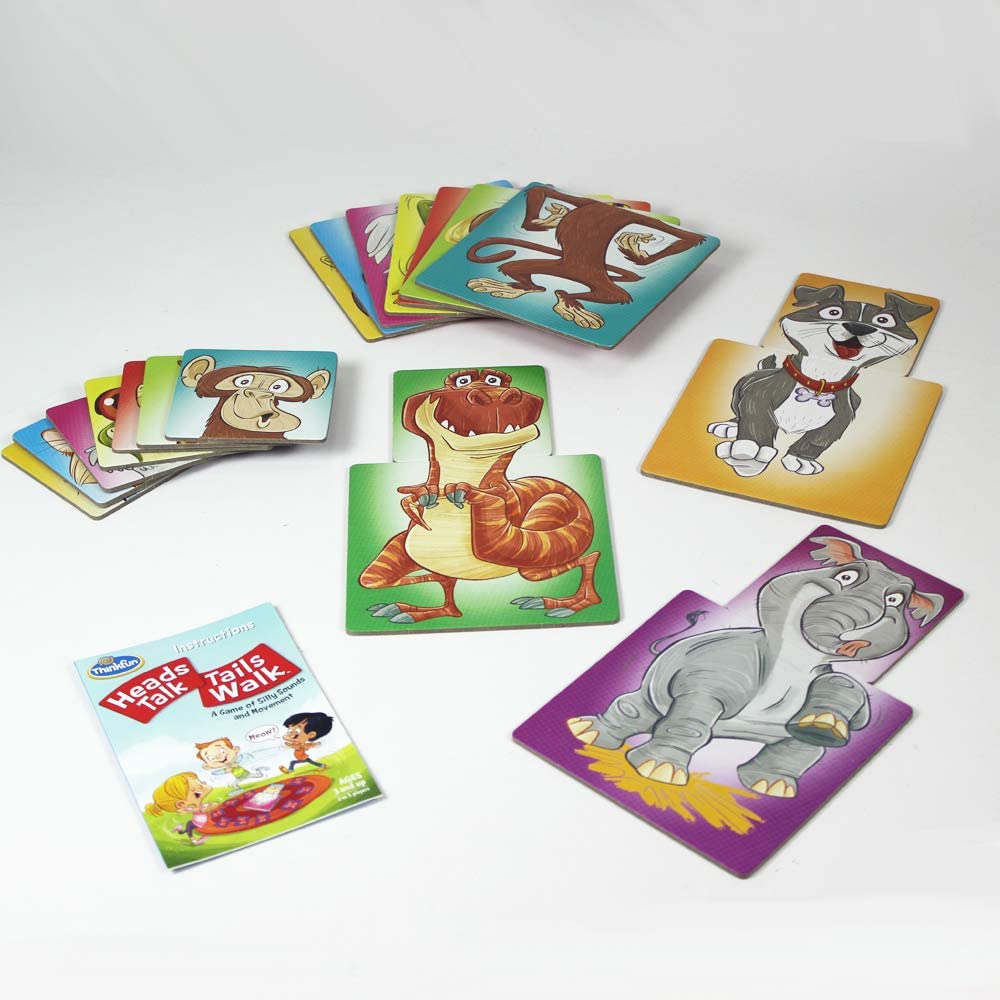 Can you hop like a frog while clucking like a chicken? Have a blast trying with this delightfully silly game for ages 3+. Players try to match hidden head tiles to the correct body tiles. If the head and body don’t match, the real fun begins! Players walk and talk like the mismatched tiles—with hilarious results!
