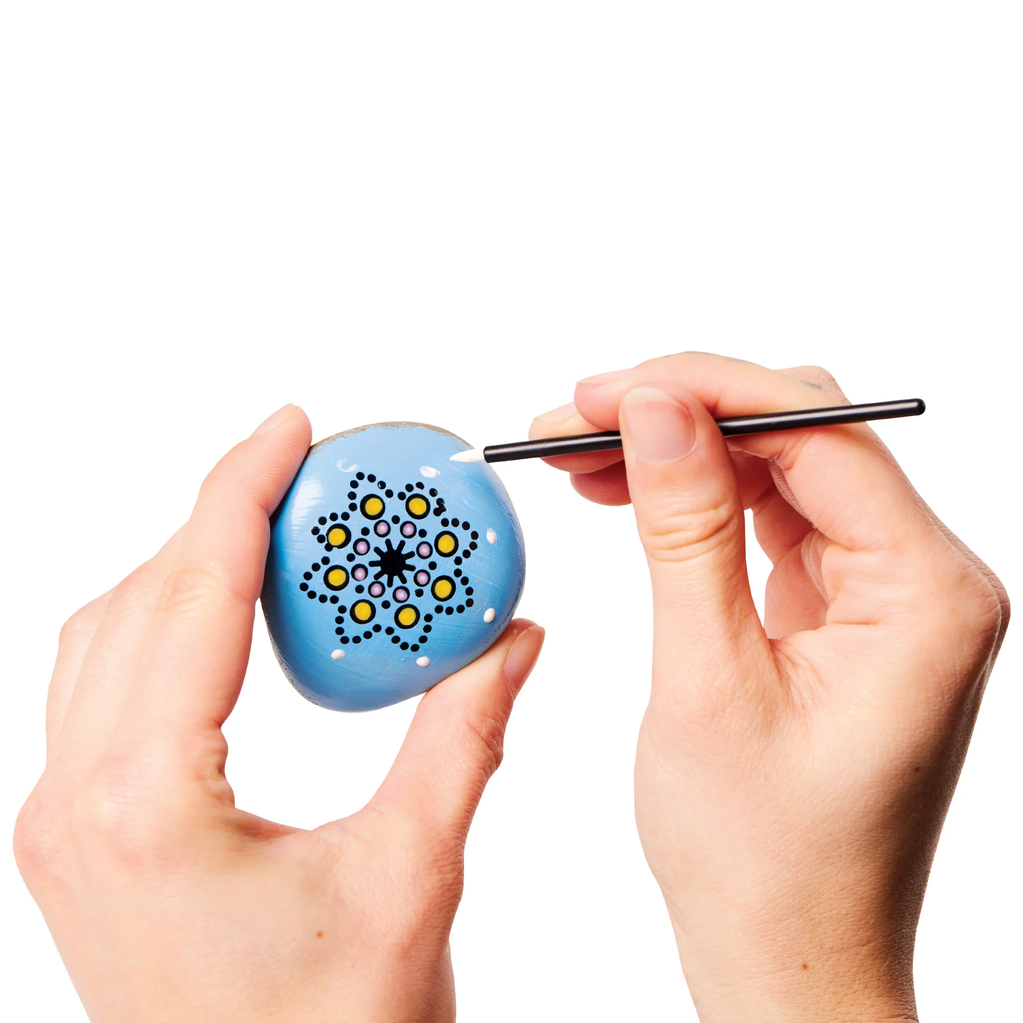 Unleash your creativity with this rock painting kit by making 10 mandala rocks with 6 vibrant colors of acrylic paint, dot art transfers and gold transfers!