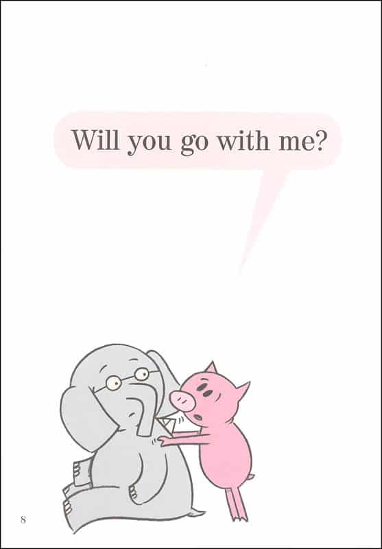 In I Am Invited to a Party! Piggie is invited to her first party. She doesn’t know what to wear, though, so she asks her best friend Elephant for help. Elephant’s advice is odd to say the least, so Piggie will try on all sorts of zany outfits before finally arriving at the party for a hilarious surprise.