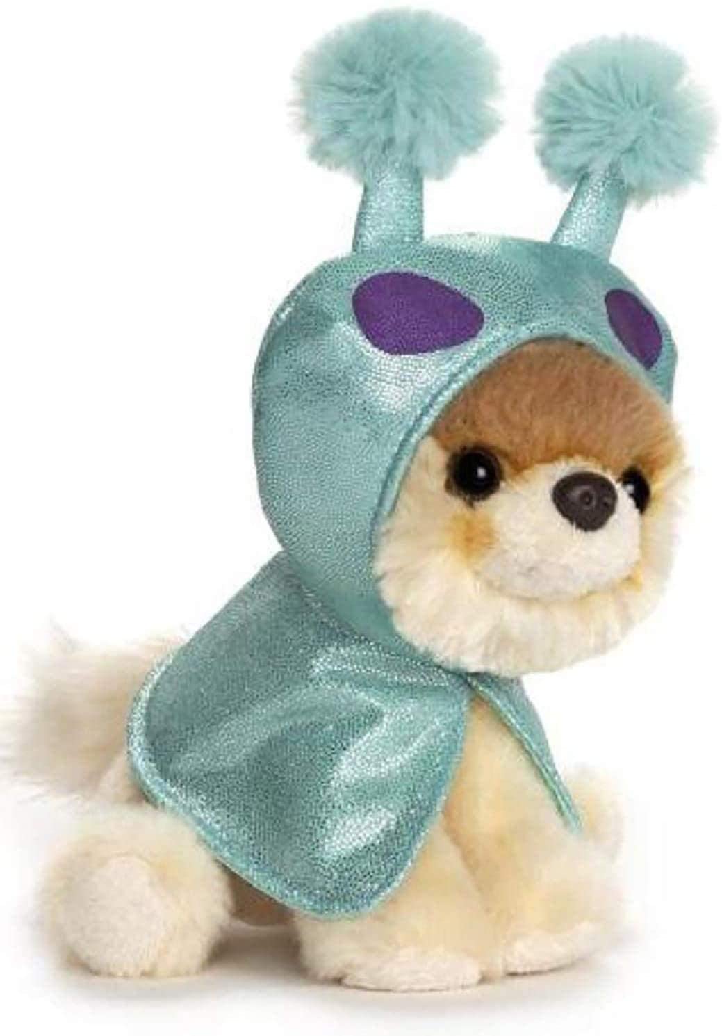 Boo, The World’s Cutest Dog, is the wildly popular Pomeranian internet sensation, with over 17 million fans on social media, who’s been turning heads and wagging tails for years with his signature short haircut, big spirit, and bubbly outlook on life. Do not fear, Earthlings; Boo comes in peace! This 5-inch Itty Bitty Boo plush, number 59 in the series, features Boo dressed up like a friendly space alien in an iridescent aquamarine outfit with fluffy pom-pom antennas on top. Collect the whole adorable Itty Bitty Boo series! Plush is surface washable and appropriate for ages one and up.