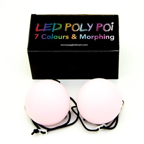 These Multi-function LED poi are BRIGHTER & STRONGER than ever before. 'Poly Poi' are a fantastic, effective alternative to more expensive models on the market. Very slightly larger than our other LED poi, these come with the added advantage of giving the user control over the effects and lights they wish to swing with. Each poi ball has a small flat surface with a miniature button allowing the user to choose between a fading effect or individual colours. These poi have the advantage of being slightly softer than most making them safer for beginners. The 4th Generation of Poly Poi have strengthened string attachments and a modified 'D' shape handle ring to keep the cord in better shape. Additional tweaks have been made to the casing materials and overall construction to really help it stand apart from the rest. Each LED Poly Poi takes 3 x LR44 cell batteries (supplied) and will glow for up to 6 hours. Available in a simple, smart presentation bo