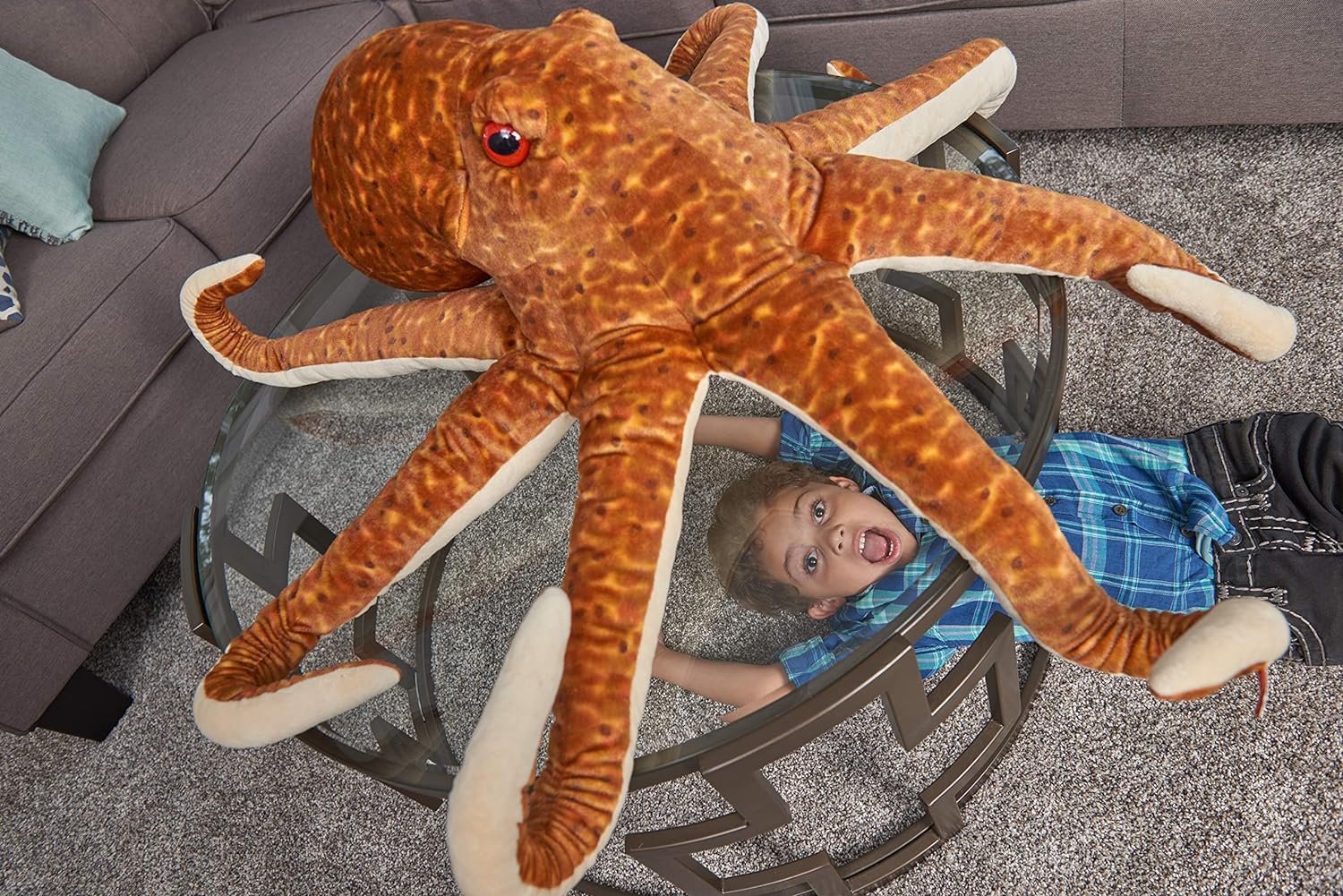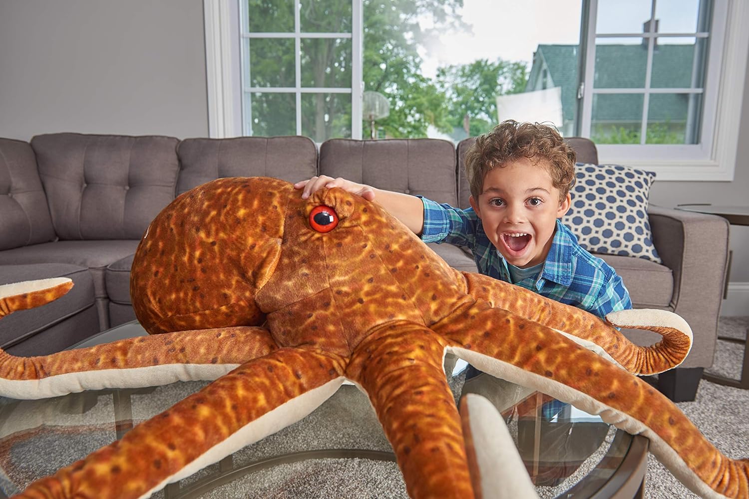 Behold the amazing deep-sea creature, The tentacle octopus. With nine brains, three hearts, and eight arms the Octopus is one of the most interesting creatures in the animal world. One silly fact is that they eat their arms when they're bored, and also very good at camouflage to protect and hide from predators. Our 30-inch whimsical octopus version is inspired by their real-life wildlife counterparts, but infused with an extra helping of softness and topped off with a bit of jumbo fluff. This realistic colored and adorable octopus makes for a memorable gift for kids or a unique gift for adults. Its size will have those in its presence want to cuddle on this animal pillow for hours. Wild Republic has been developing plush animals and educational toys for kids of all ages since 1979, With a specialization in realistic stuffed animals.