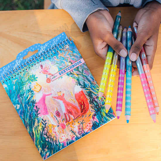 A high-quality square sketchbook featuring Claire Westwood’s lovely artwork to inspire your own. Pairs well with the matching King Fox Special Pencils. •Fosters creativity, self-expression, and develops fine-motor skills •Encourages screen-free, self-directed, imaginative play •Sustainably Sourced: Made with recycled board and printed on FSC®-certified paper using vegetable-based inks.