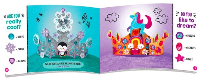 Kids rule the kingdom of their imagination! This book and craft kit contains 3 sparkling crowns just waiting for a special princess to design them. With more than 100 gems and punch-out pieces to choose from, kids can decorate tiaras any way they like. Add a bonus collection of minitiaras (in case any stuffed animals around the kingdom start feeling just a bit left out), and it will give any kid that happily-ever-after feeling. After all, tiaras are the perfect goes-with-everything accessory.
