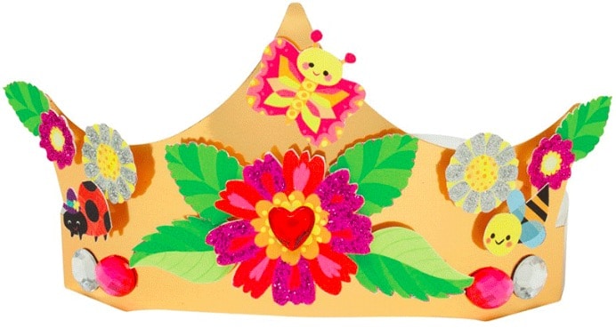 Comes With: 92 punch-out pieces, 143 pieces of foam tape, 3 sparkly tiaras, 15 sticky-back gems.