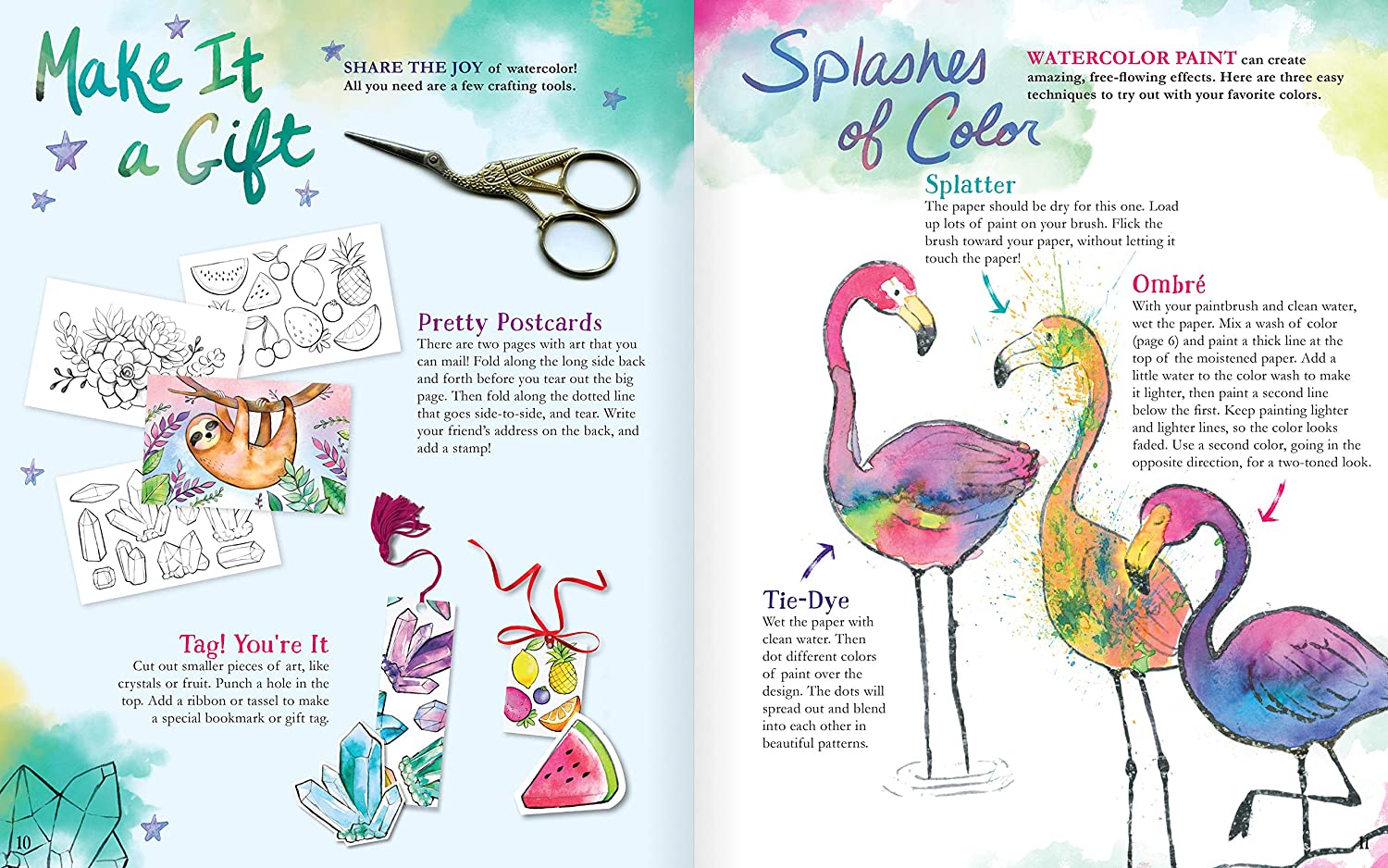 Watercolor made easy...and dreamy! Paint 20 delightful watercolor designs, including cute woodland animal friends, magical mermaids, tropical birds, inspirational quotes, sweet treats, and more! Learn how to use watercolors in the basic skills section up front, and then advance your skills as you learn different types of brushwork, blend colors, and create amazing special effects with paint on high-quality watercolor paper.