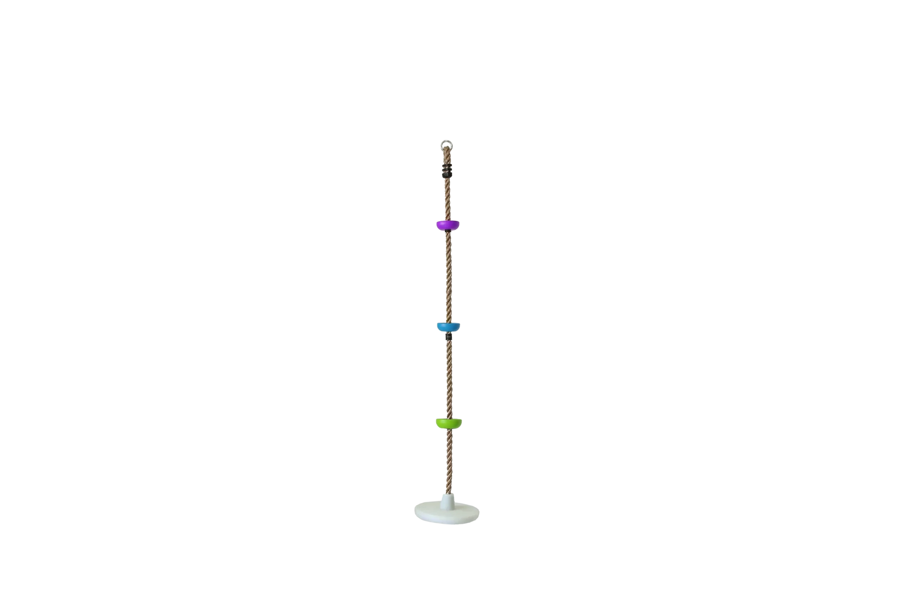 LED lights allow fun colorful daytime or night time play. 25 Multicolored LEDS changes to 3 colors - red, blue and green with and automatic timer shut off. Sturdy solid base helps easier kids climb up the rope easier, versus a smaller climbing hold on the bottom. Can also be used a swing seat and sit down and swing back and forth. Easily attach to a Ninja or Swingset Lines, play structures or even tree branches.